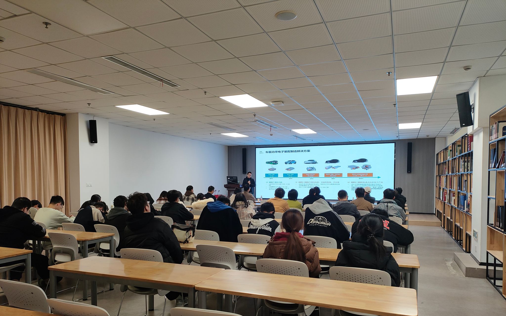 刘斌博士以《具身智能:从研究到落地》为题,结合自身丰富的科研与产业经验,深入解析了具身智能的核心技术难点,分享了该领域从实验室研究到工业落地的实践路径,为师生呈现了具身智能产业的发展全貌。陈岱岱博士以《新能源车载电源开发及未来产业前瞻》为主题,结合当前新能源汽车产业发展趋势,详细阐述了车载电源开发的核心技术要点,并基于行业数据与实践案例,对新能源车载电源产业的未来发展方向进行了精准预判,为师生搭建了技术研发与产业应用之间的沟通桥梁。