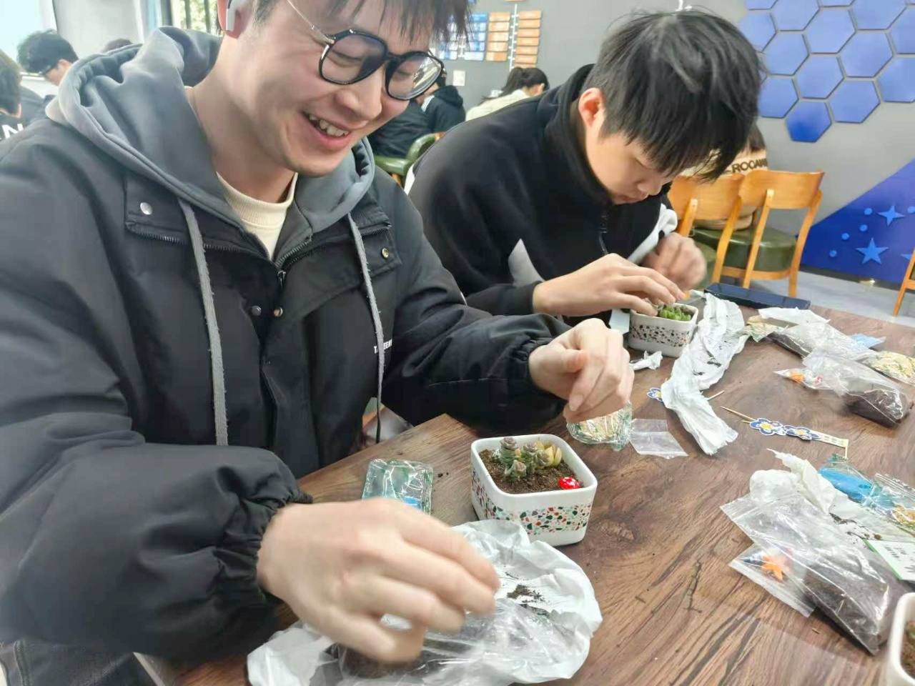 为传递绿色环保理念,3月12日,信息学院以“赴春之约·共植绿意”为主题,在学生社区浙里星光中开展多肉盆栽DIY手作与绿植盲盒认养活动,让学生在动手创作与趣味互动中感受绿植魅力,从植物成长中疗愈心灵,吸引百余名学生踊跃参与。