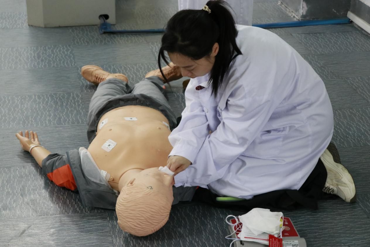 课堂上,医护专家团队化身“安全导师”,围绕心肺复苏(CPR)、AED使用、海姆立克急救法、创伤止血包扎等核心应急技能展开标准化教学。借助心肺复苏模拟人、AED训练机、专业止血包扎器材等设备,医护人员精准示范动作要领、逐一纠正操作偏差,明确按压位置、深度、频率等关键参数,并结合运动损伤、烫伤、晕厥等大学生高频突发场景,用真实案例拆解处置流程、警示常见误区,让急救知识从书本走向实操,让大学生真正掌握关键时刻能救命的实用本领,实现应急救护能力从“知晓”到“会用”的实质突破。