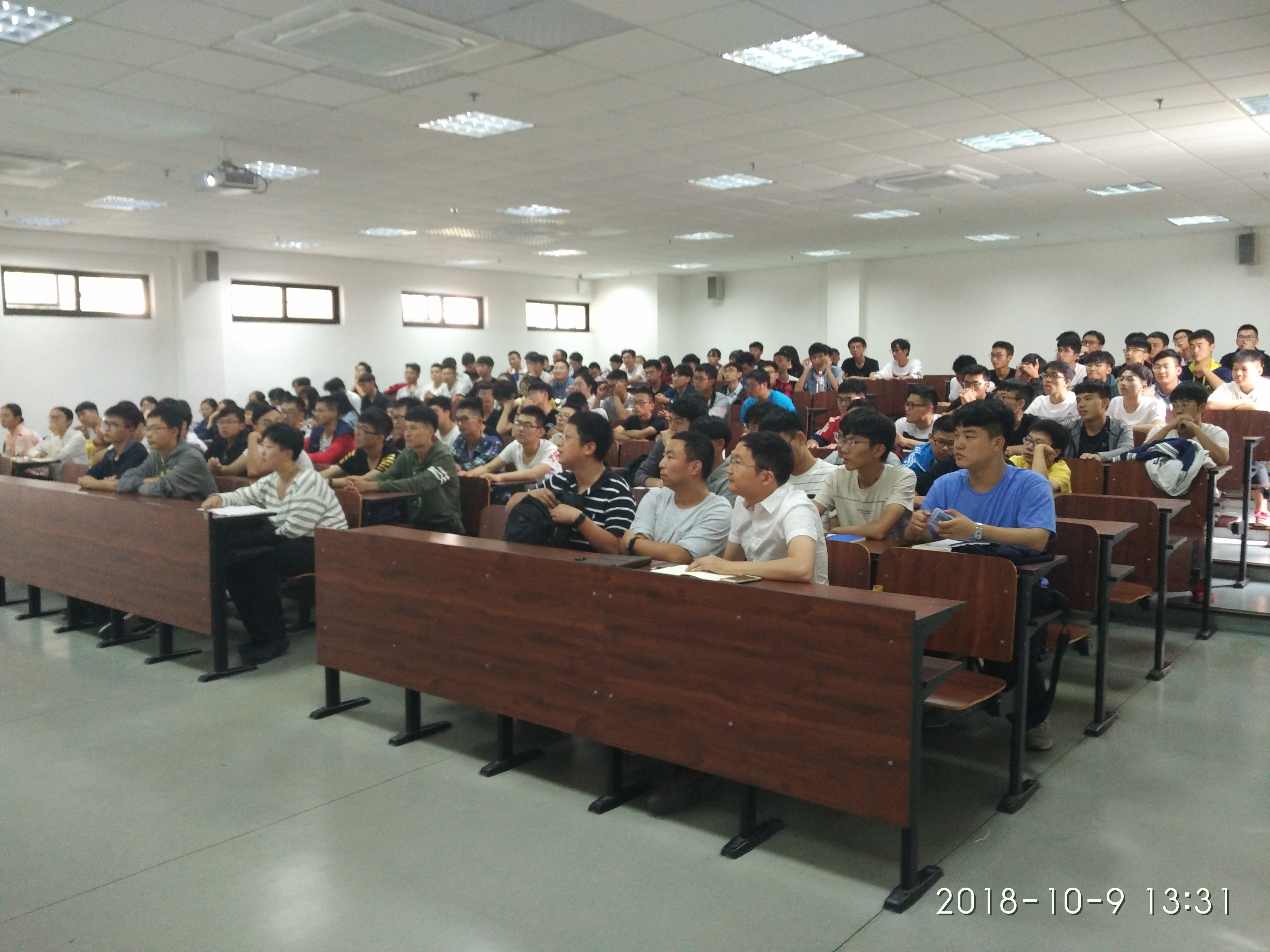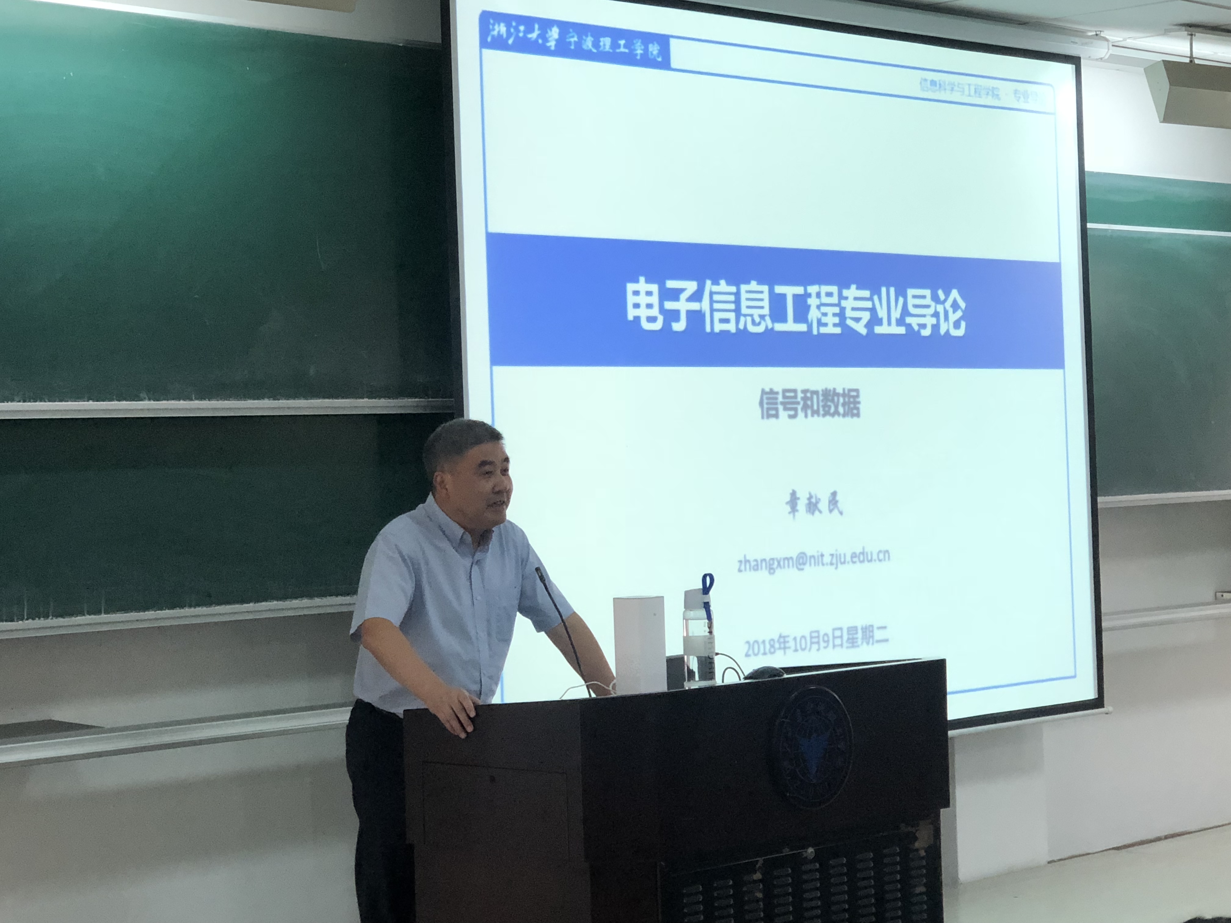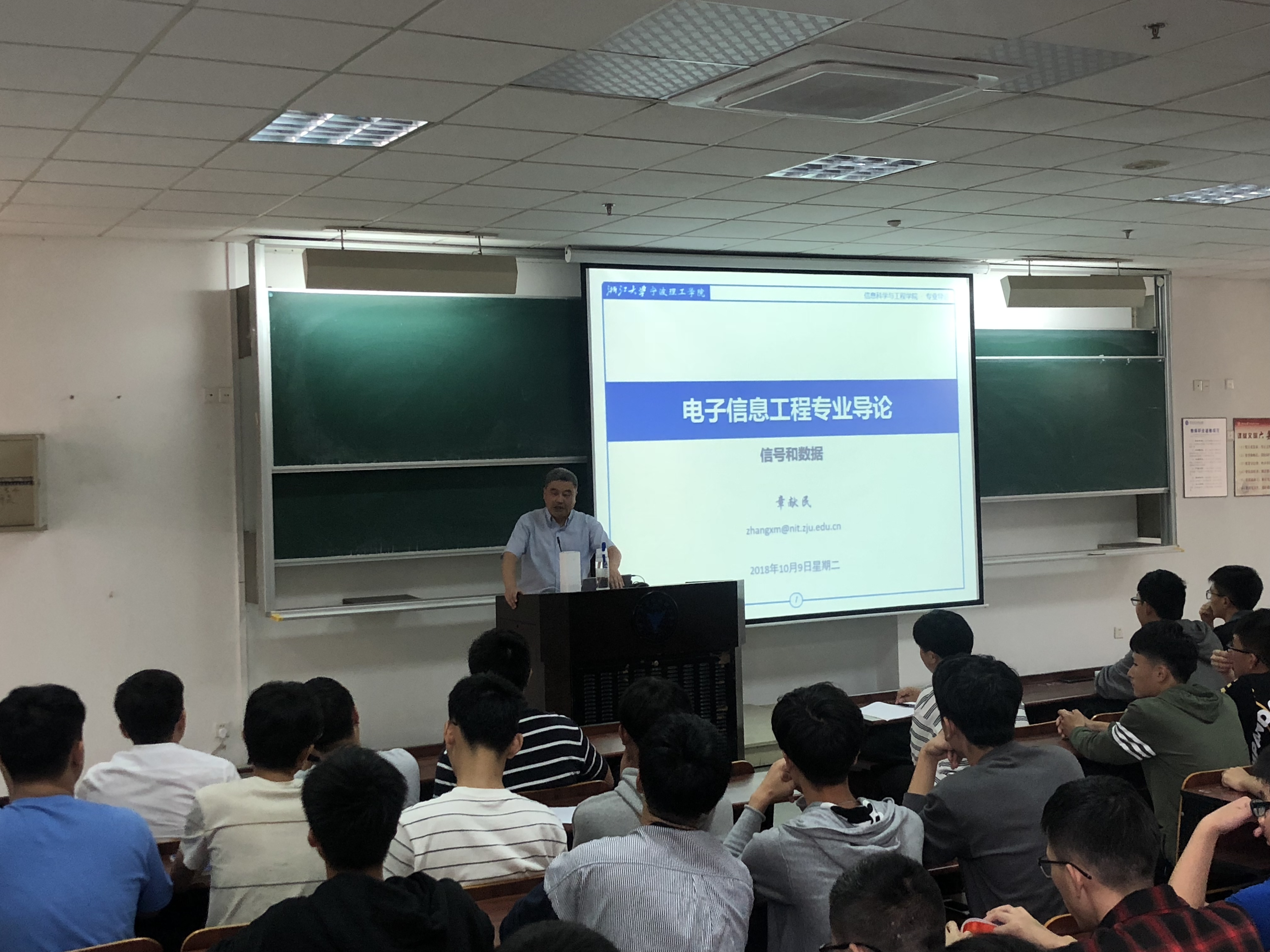 10月9日下午,浙江大学宁波理工学院章献民院长来到NF201教室,为2018级信息学院新生上了一堂生动的电子信息工程专业导论课。2018级电子信息、自动化专业共120余名新生齐聚一堂,宽敞的教室座无虚席。