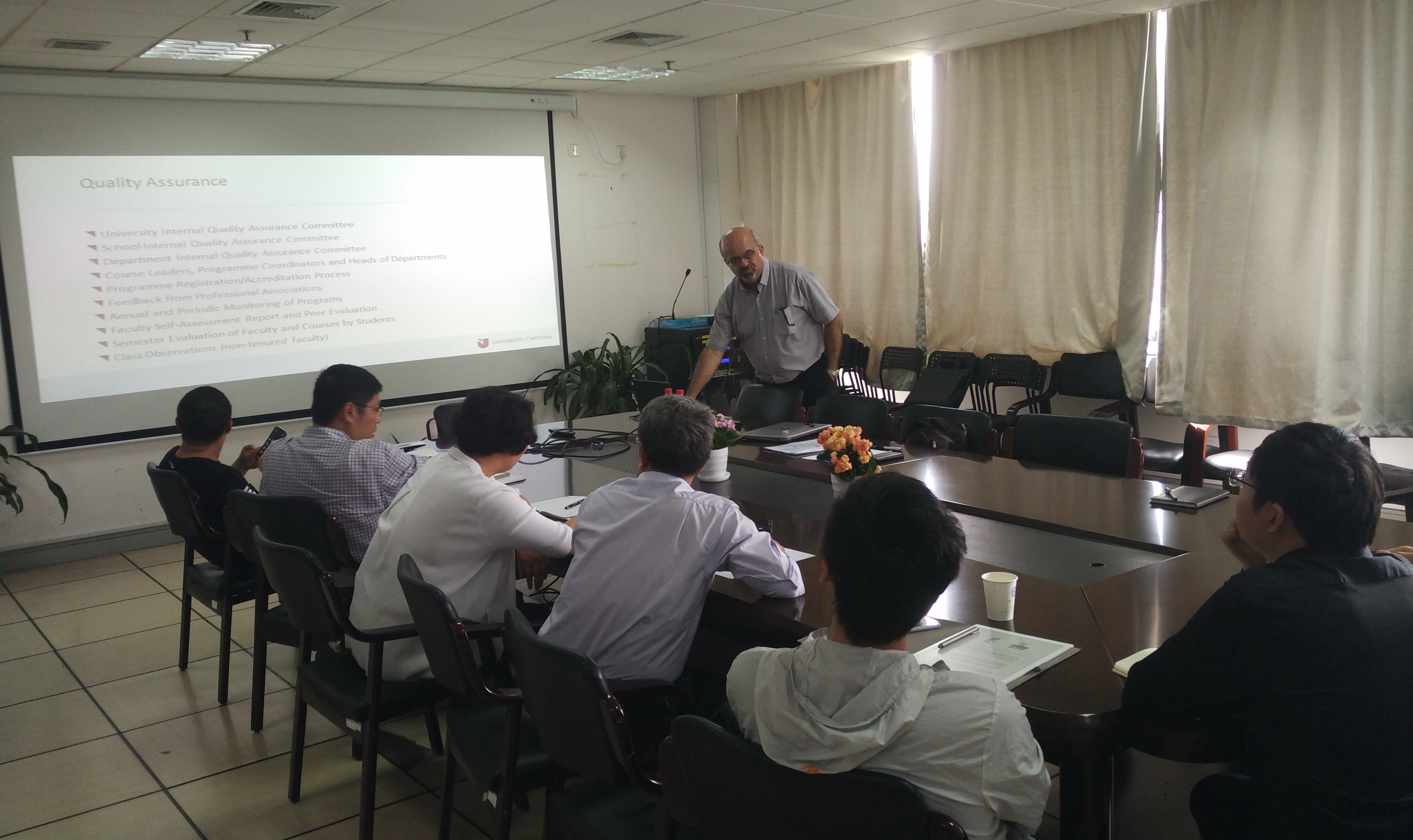 6月3日,学院副院长陶吉利及部分专业教师与来自尼科西亚大学科学工程学院副教授GeorghiosGregoriou进行了洽谈。Gregoriou首先介绍了尼科西亚大学的地理位置、学位设置及伊拉莫斯+项目(Erasmus Plus)。尼科西亚大学是塞浦路斯最大的私立大学,位于塞浦路斯首都。目前成长为一个国际化的教育中心。来自世界各地的学生在这个三大洲交汇的爱神之岛上体验不同的文明和文化。尼科西亚大学采用英文教学,为学生提供140多个本科、研究生和博士学位课程。课程包括学生需求度较高的工商管理、会计、金融、计算机科学、计算机工程、电气工程。