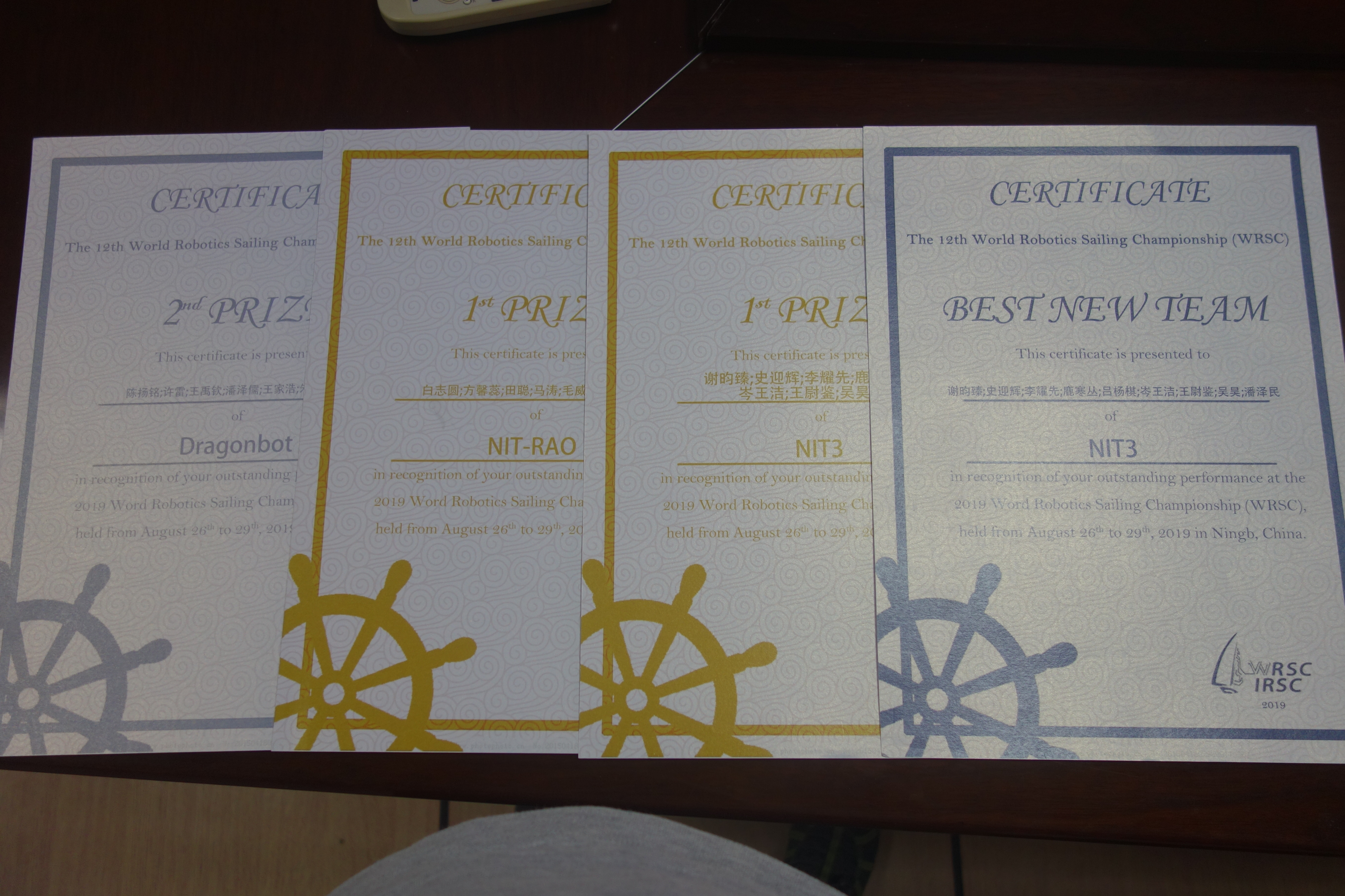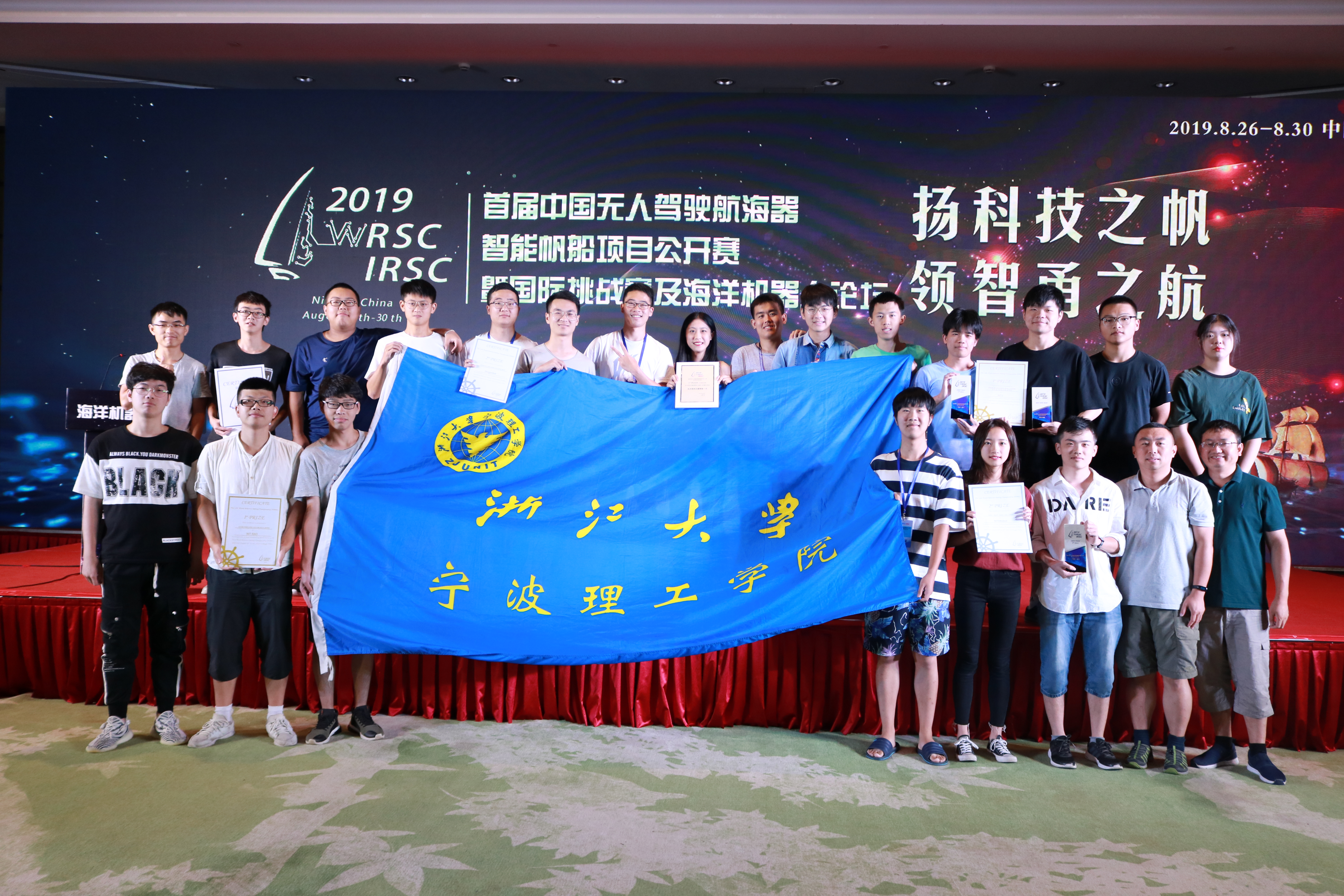首届中国无人驾驶航海器智能帆船项目公开赛暨第十二届国际挑战赛于2019年8月26日至8月30日在中国宁波举办,这是自该项世界上最大的无人帆船赛事2008年创办以来,首次在欧洲和美洲以外的地区举办。浙大宁波校区受邀并选派了宁波理工学院信息学院3支团队、数据学院1支团队参赛,经过激烈角逐获团体总分一等奖2项(亚军、季军),二等奖2项,单项赛事成绩最佳2项,以及最佳新队奖,成绩优异。