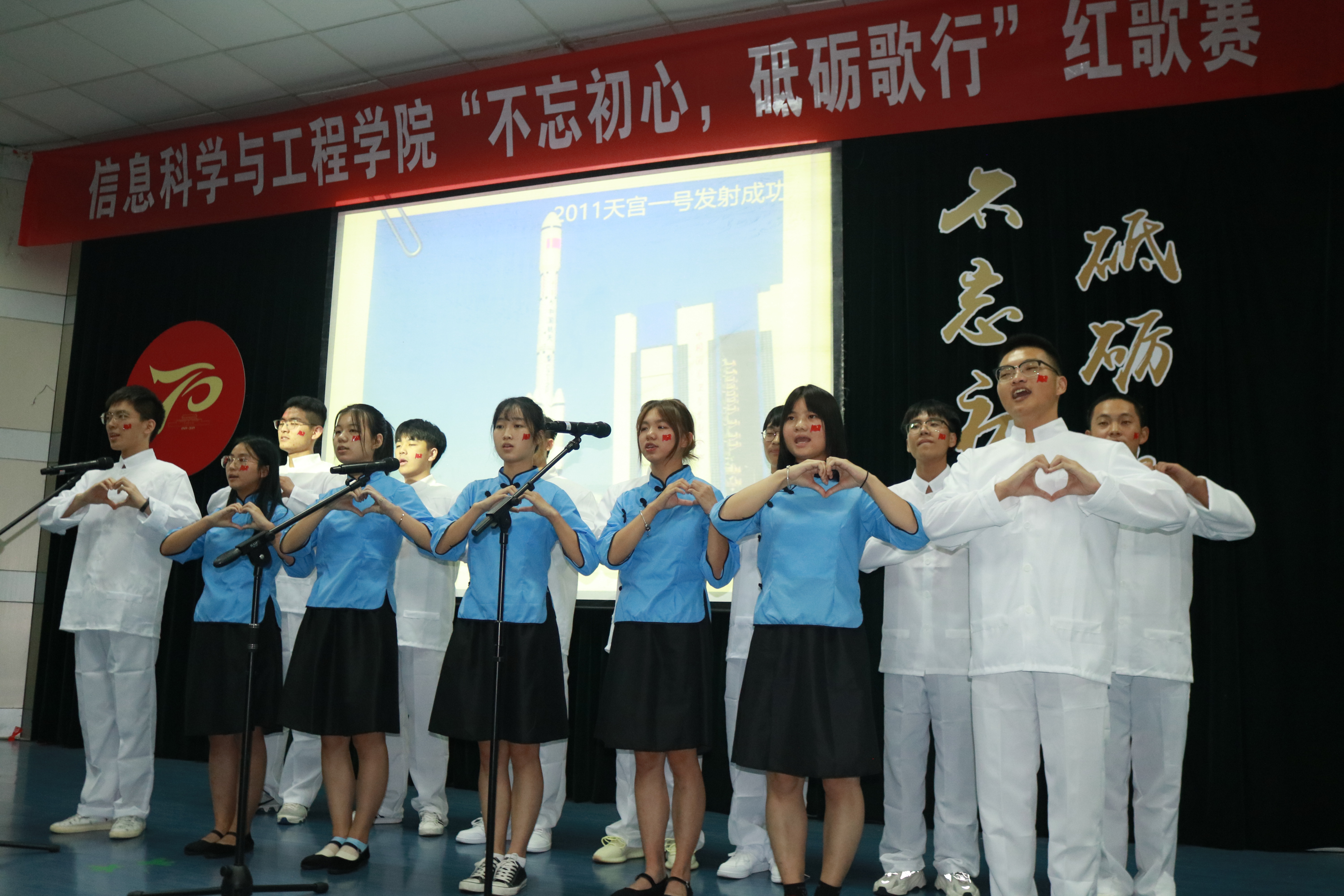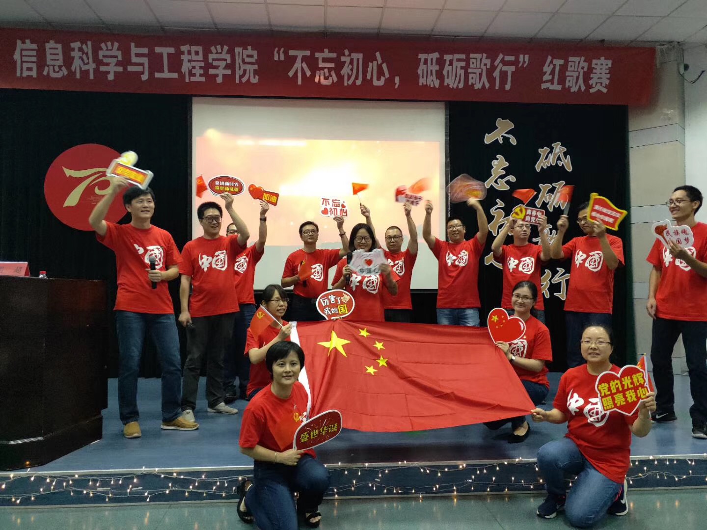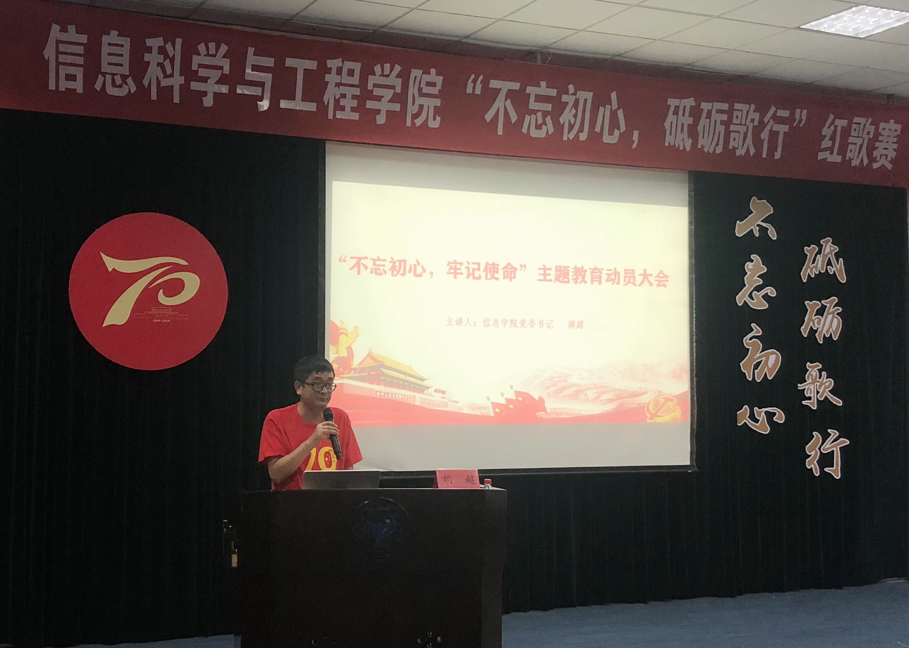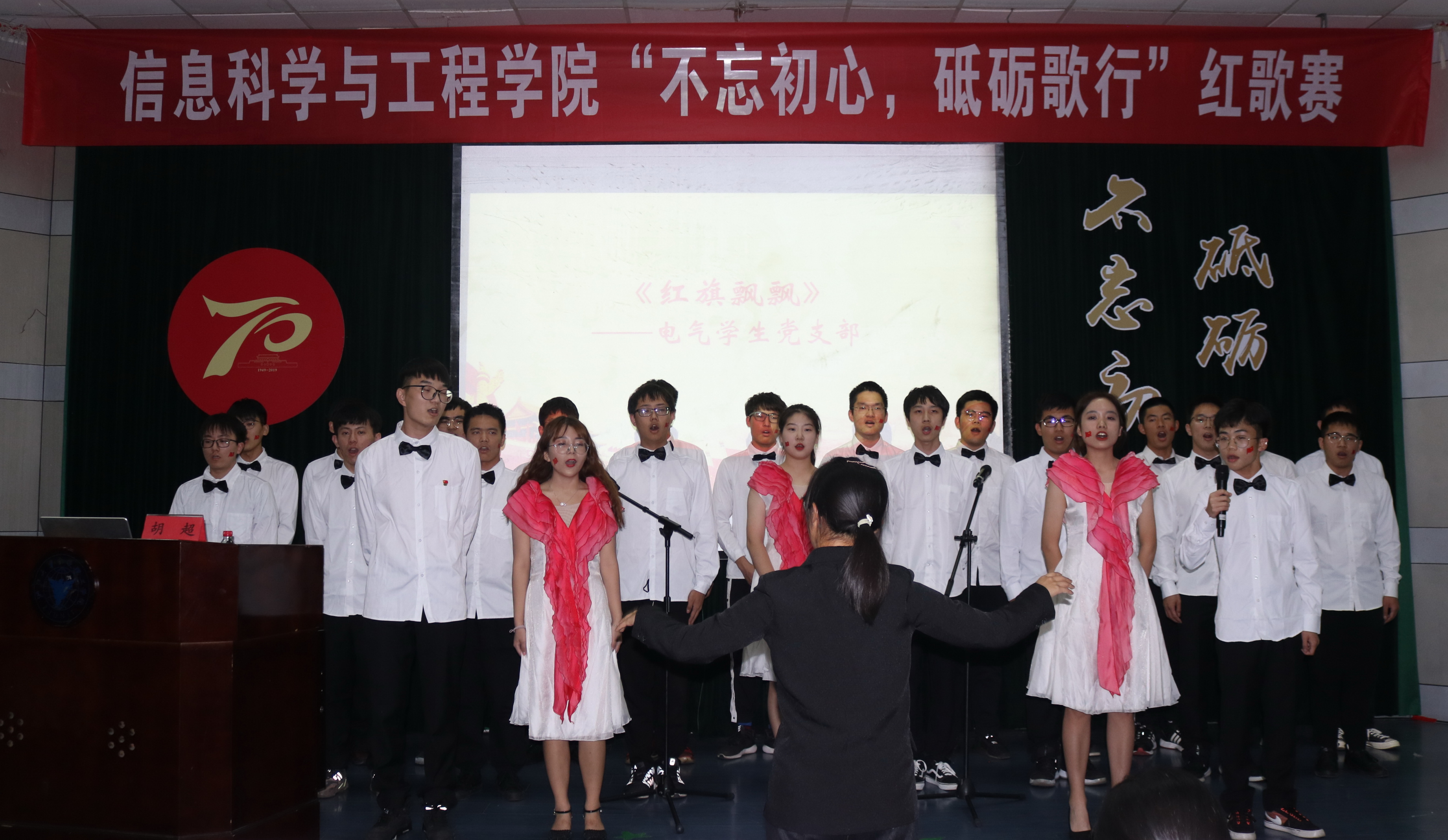 9月25日,信息学院“不忘初心、牢记使命”主题教育动员会暨“不忘初心、砥砺歌行”红歌大赛在nf103隆重举行。信息学院领导班子,党委成员,各支部党员、积极分子及新生代表共计400余人一起,歌颂祖国,歌唱时代,向祖国母亲70华诞献上最真挚、最热烈、最美好的祝福!