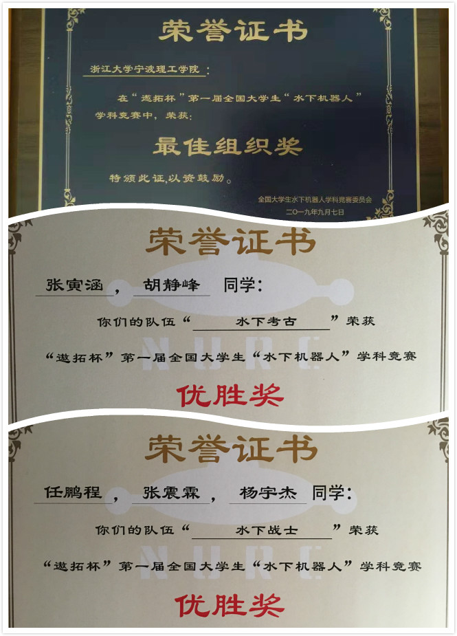 2019年9月6日至8月7日,首届全国大学生水下机器人竞赛在浙江大学舟山校区举办。信息学院选派2支团队参赛,学生来自自动化和电气工程及其自动化专业,在备战时间非常紧张的情况下,团队齐心协力,刻苦钻研,经过激烈角逐,最终在23支参赛队伍中位列第11和第12名。