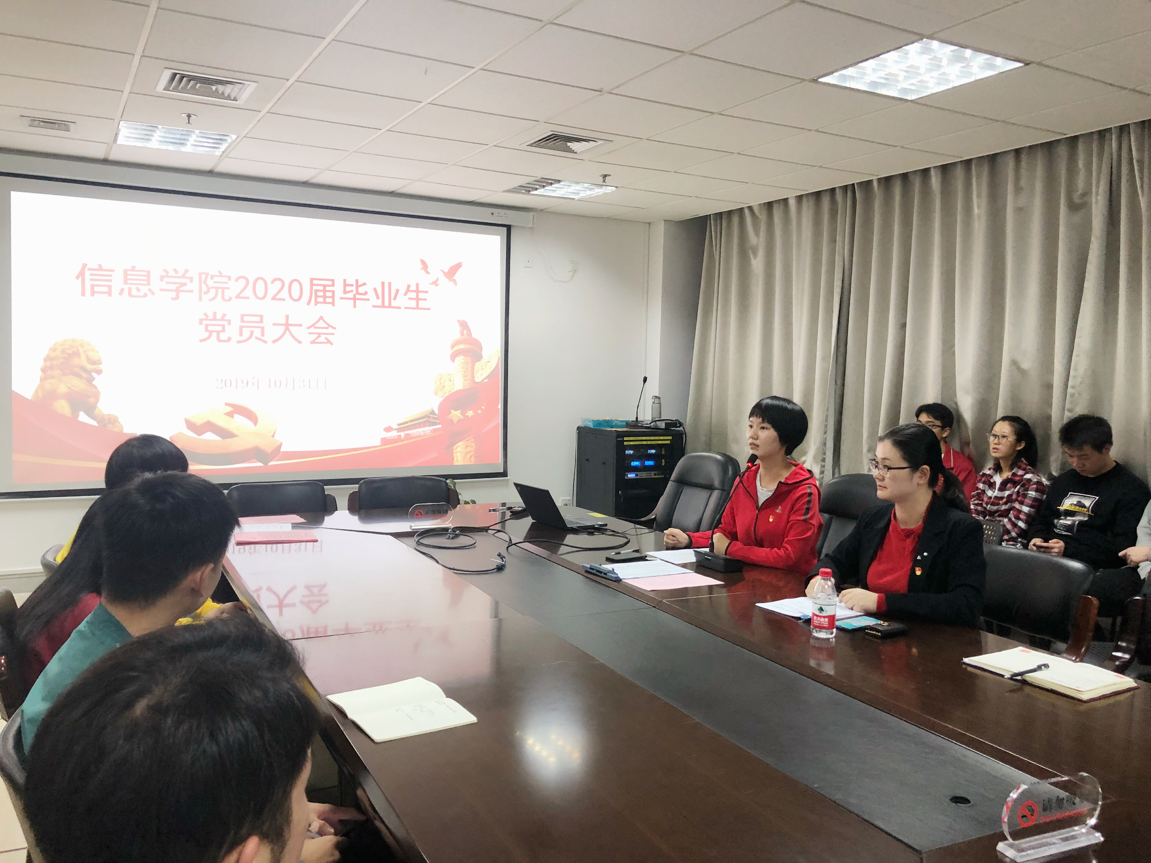 近日,信息学院开展毕业生党员专题教育,学院党委副书记方芳为毕业生党员讲授了题为“不忘初心,牢记使命,做勇担当、敢作为的学生党员”的专题党课。学院全体学生党支部书记,毕业生党员参加了会议。
