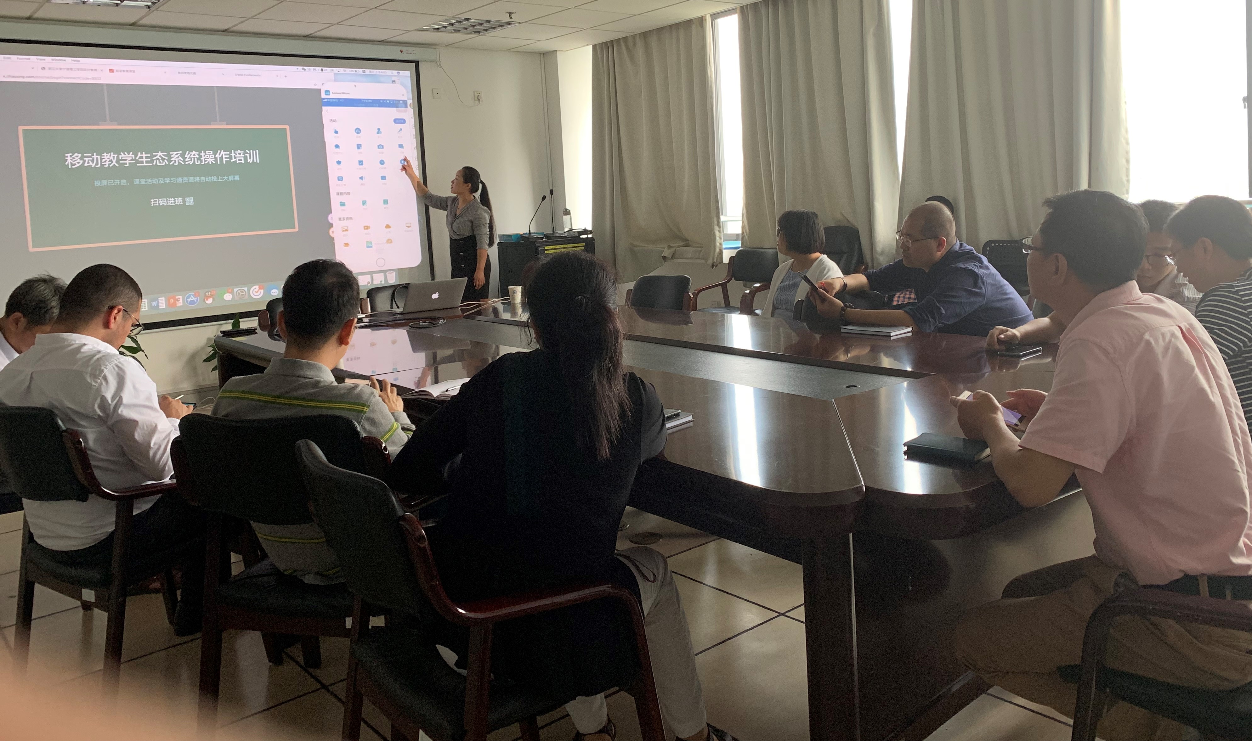 为提高我院教师信息化教学管理水平,推动课堂教学改革,规范教学过程管理,提高学生的抬头率,提升课堂教学质量,信息学院于10月11日下午在石麟902会议室举办了网络教学平台和学习通应用操作培训会。副院长陶吉利教授、我院部分老师以及应邀的数据学院部分教师参加了本次培训。