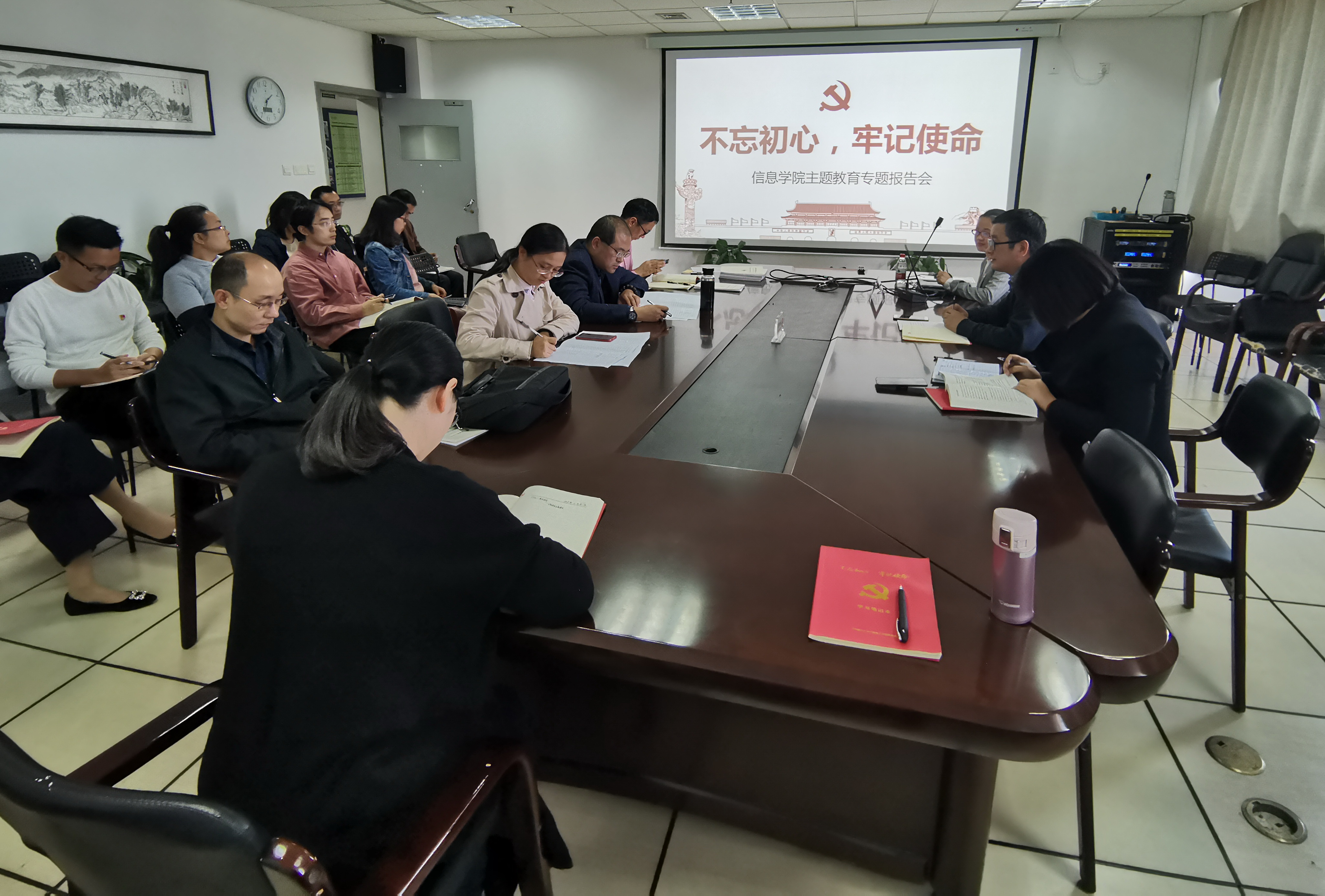 11月8日,在石麟9楼会议室,信息学院组织开展了主题教育专题报告会,特邀法政学院聂迎娉老师做“红船精神承载初心 牢记使命奋勇前行”主题宣讲。学院党委书记胡超主持会议,学院全体教工党员参加了此次集中学习。