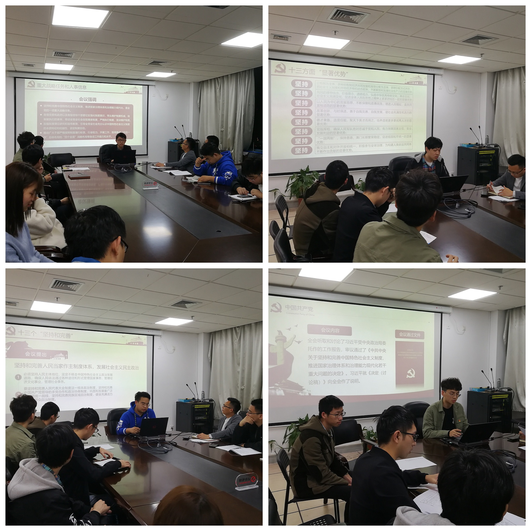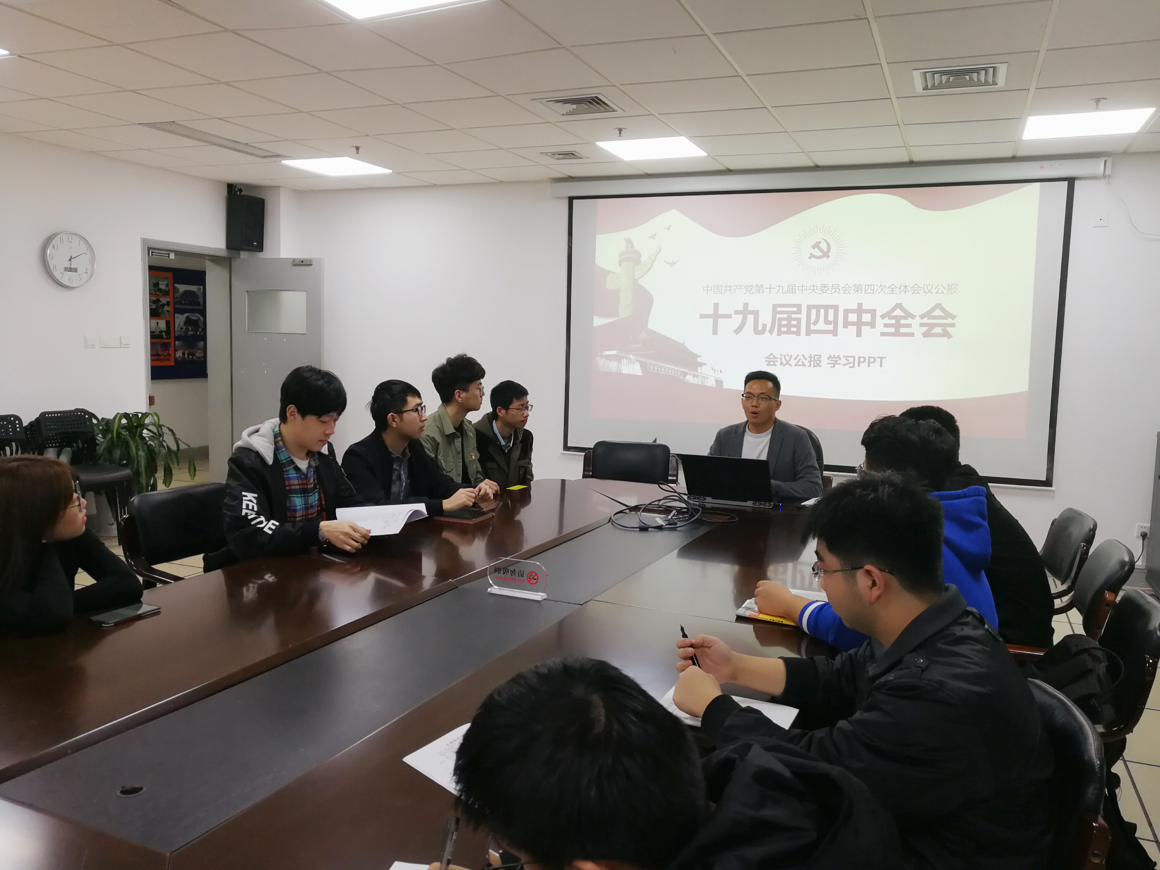 在学习会开始之前,金智展老师强调,作为学生党员,更要积极主动提高政治觉悟和政治能力,做到始终同以习近平同志为核心的党中央保持高度一致。认真领会十九届四中全会的会议精神,结合自身情况,提升个人的党性修养与政治觉悟。