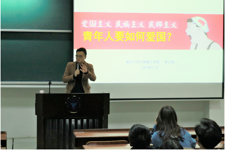 夏文来老师为信息学院全体团学干部带来了“青年人要如何爱国”的精彩一课。他结合当下的热点和新闻,用一个个鲜活的例子向在场的同学们讲述什么是爱国,青年人要如何爱国?青年工作,抓住的是当下,传承的是根脉,面向的是未来,攸关党和国家前途命运。通过夏老师的课堂,同学们深深认识到了大国之不易,被那一份浓厚的爱国情怀所感染。我们不仅学会了理性爱国,更深刻认识到了国家命运与我们大学生息息相关。最后,夏老师用三问“时代之问,育人之问,爱国之问”引导大家对偶像崇拜的深入思考。