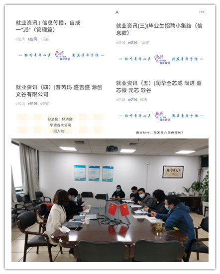 新冠肺炎疫情发生以来,面对严峻的就业形势,信息学院多举措开展线上就业帮扶工作,通过开展精准排摸、就业资讯推送、云上考研复试分享会、强化校企合作等方式,帮助同学们共刻时艰,共迎挑战。