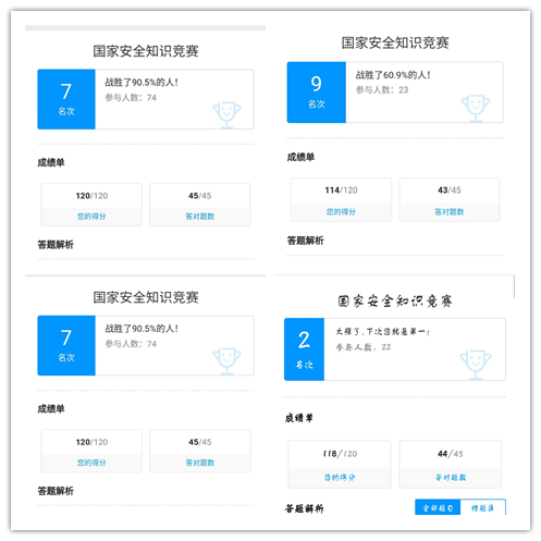 同时为进一步提升学生国家安全知识知晓度,学院利用线上渠道积极开展国家安全知识竞赛,切实提升学生的法治意识,全体党员及入党积极分子百分百覆盖,各团支部也积极组织同学进行了朱枫烈士事迹学习并参与了国家安全知识竞赛。
