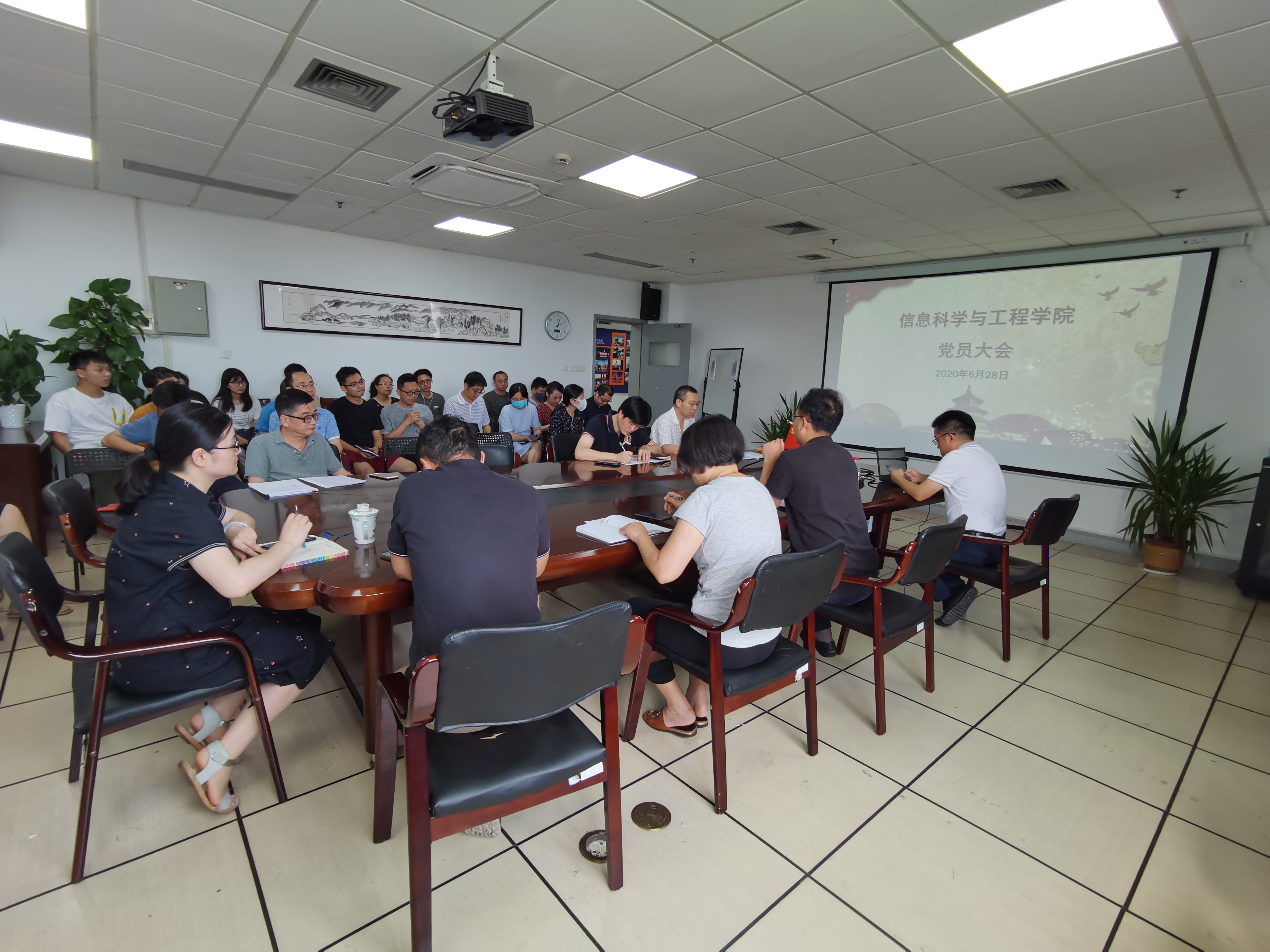 6月28日,信息学院“党课开讲啦”活动在石麟9楼会议室举行,本次活动特邀传媒与法学院陈印昌老师作2020年全国两会精神解读的报告。学院党委书记应中元主持,学院全体教工党员和学生党员代表参加了活动。