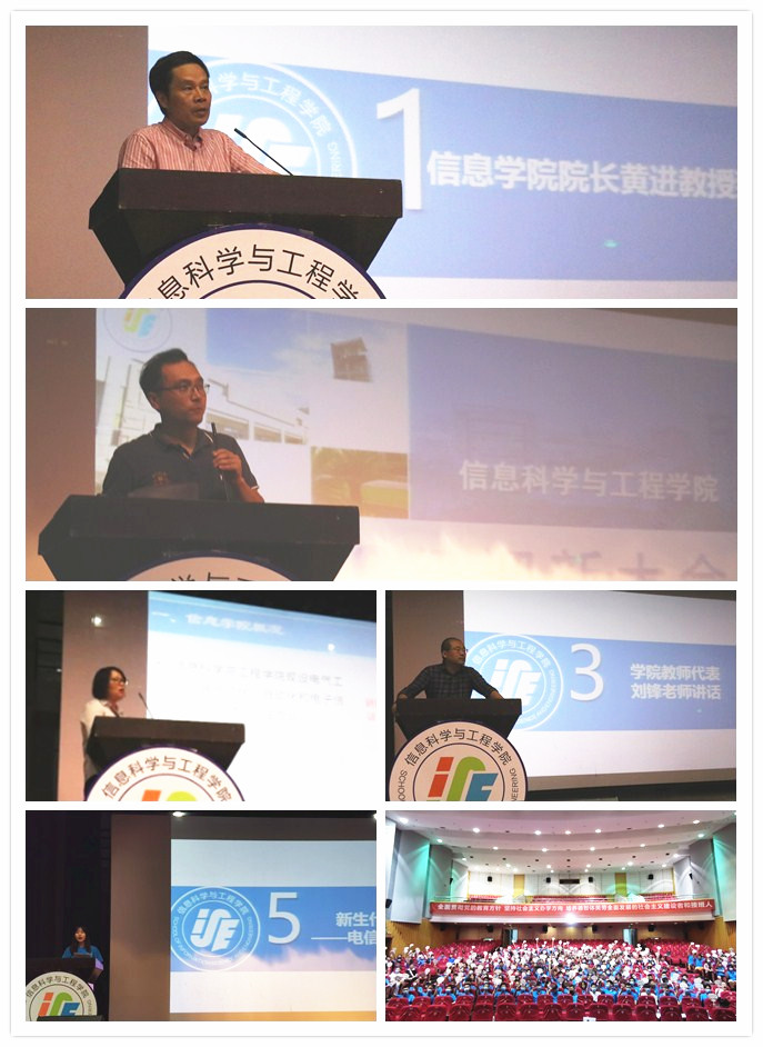 作为新生始业教育的重点篇章,信息学院2020级迎新大会9月22日晚在可珍讲堂举行。会上,学院院长黄进教授对2020级新生表达最真挚的问候与祝福,并以学者和长辈的身份,勉励新生们树立三个努力的目标:掌握过硬的技能,培养高尚的情操,锻炼健康的身体。并寄语新生们志存高远,脚踏实地,克服逆境,挑战自我。副院长陶吉利对学院概况,各专业培养方向、特色、知识体系,以及学生培养成果进行了简要介绍。