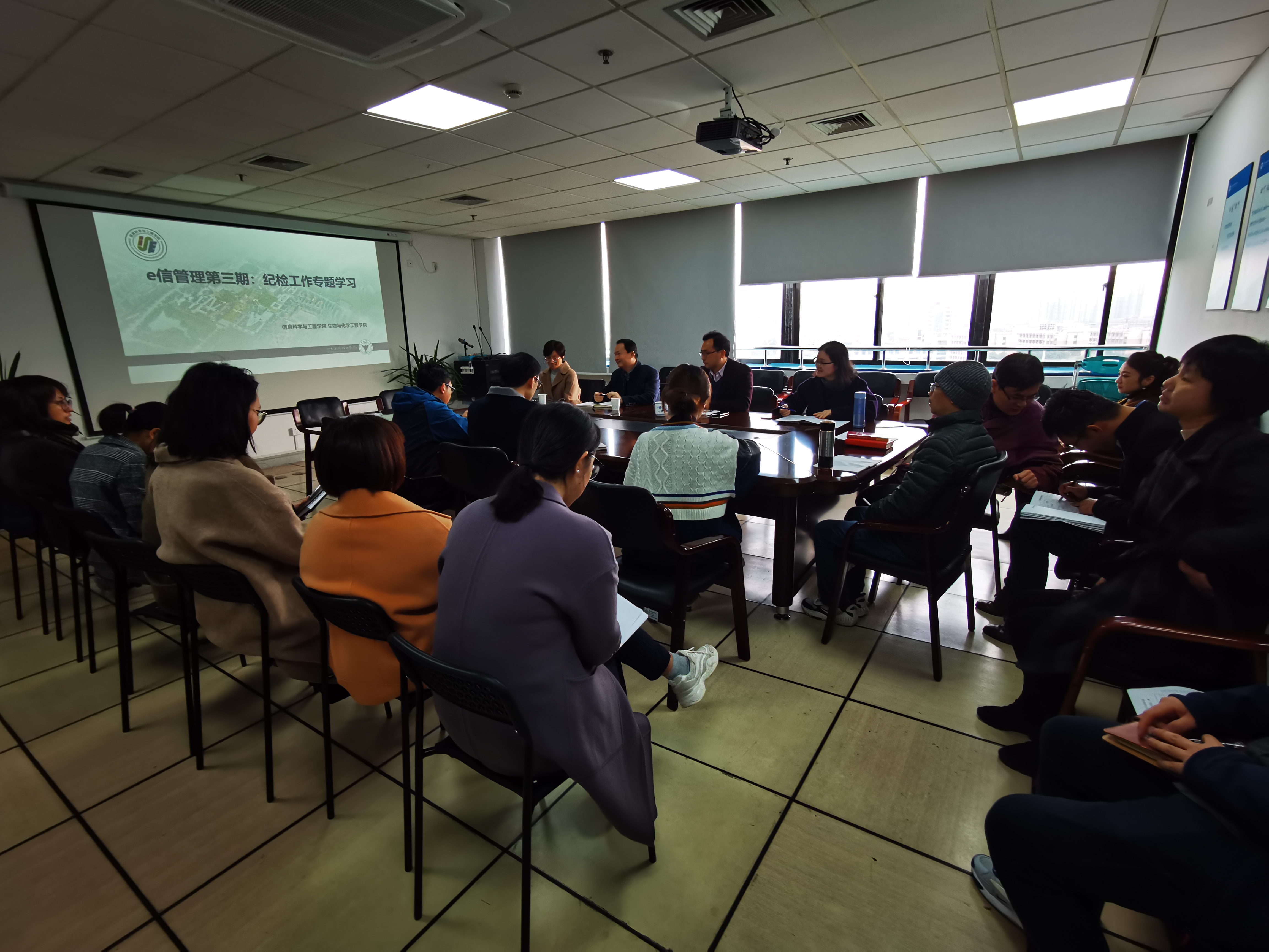 为进一步扎实推进学院党风廉政建设和反腐败工作,提升岗位人员的专业认知和素质能力。12月4日,“e信管理沙龙”第三期--纪检工作专题学习活动在信息学院902会议室举行。此次活动特邀学校监察审计处副处长王成作专题讲座,信息学院党委副书记(主持工作)应中元、生化学院党委副书记赵涵、信息学院和生化学院全体党支部书记、纪委委员和行政人员参加了此次学习,培训由信息学院纪委书记方芳主持。