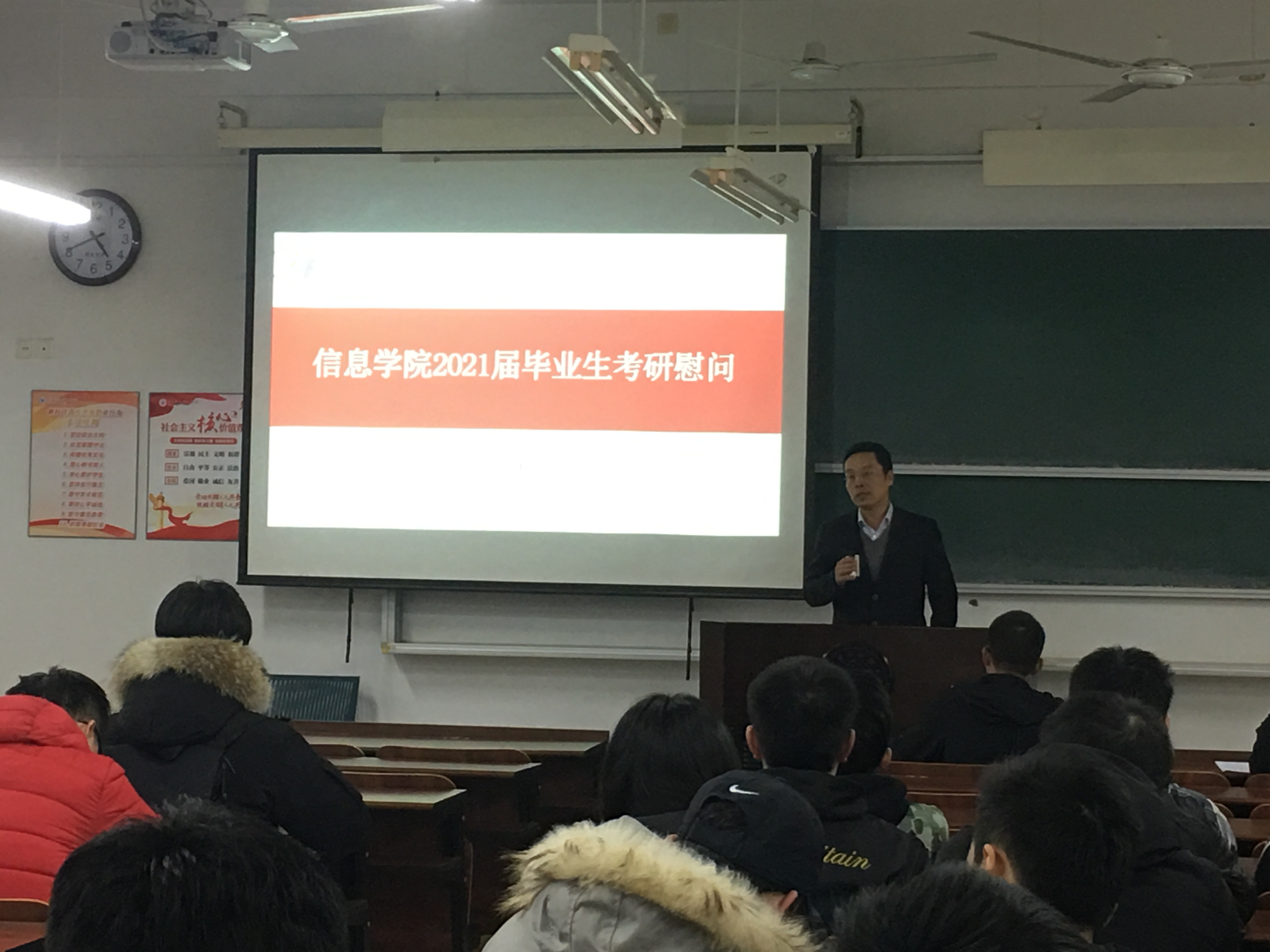 以生为本是信息学院四知教育推行中践行的宗旨和原则,为加强学生考研规划指导,助力毕业设计,推进学院全过程全方位的人才培养,信息学院开展了系列毕业生指导服务活动。