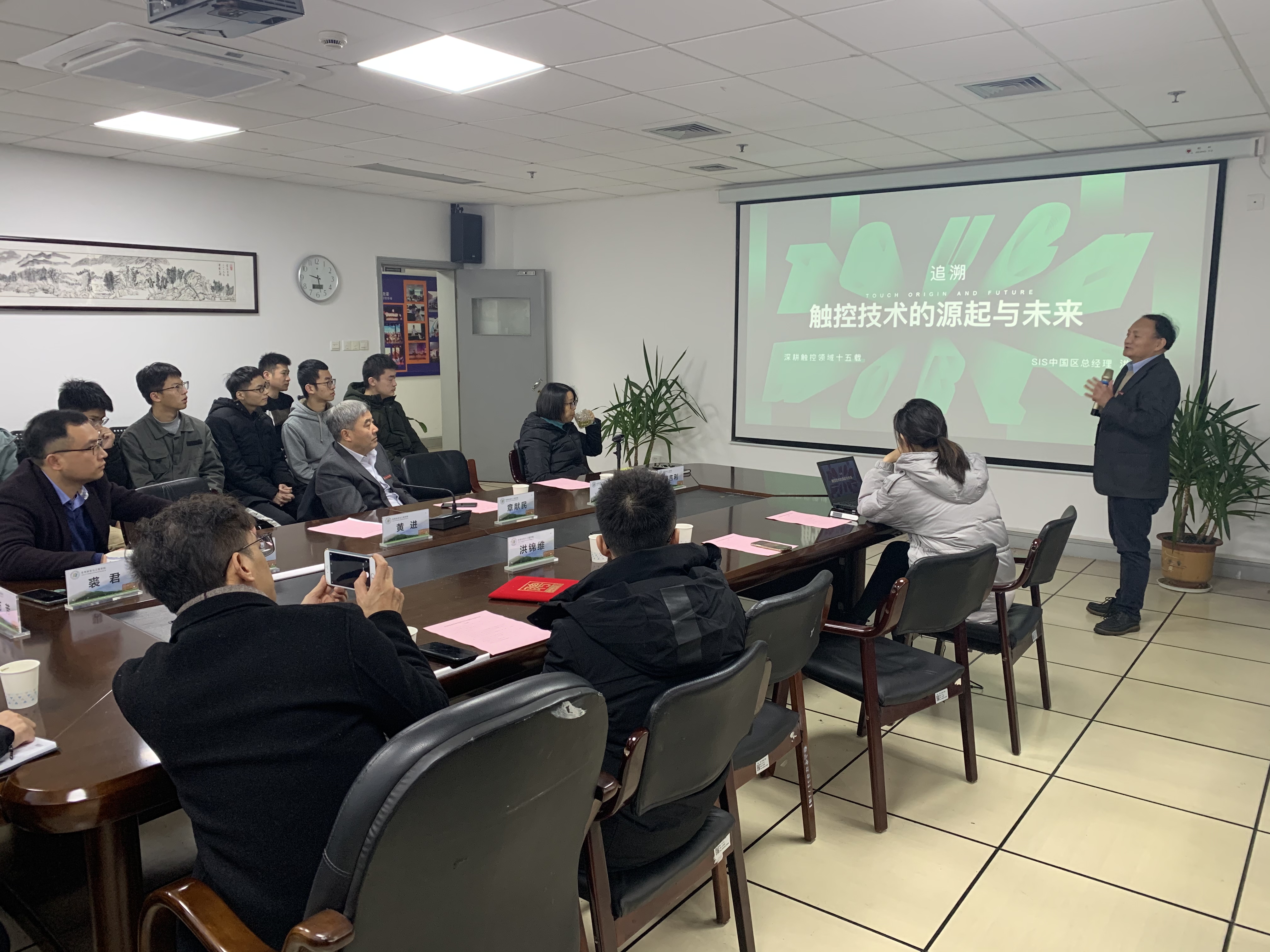 聘任仪式上,王高合处长对洪锦维教授作了详细介绍,章献民副校长致欢迎辞并为其颁发聘书和佩戴校徽。随后,洪锦维教授作了题为“触控技术的发展缘起与未来”的学术报告。他首先介绍了触控技术的发展,然后从我们身边无处不在的触控环境,结合他们最新研发的玻璃触控技术,现场展示了可实现的应用场景,最后展望了触控技术的未来发展。