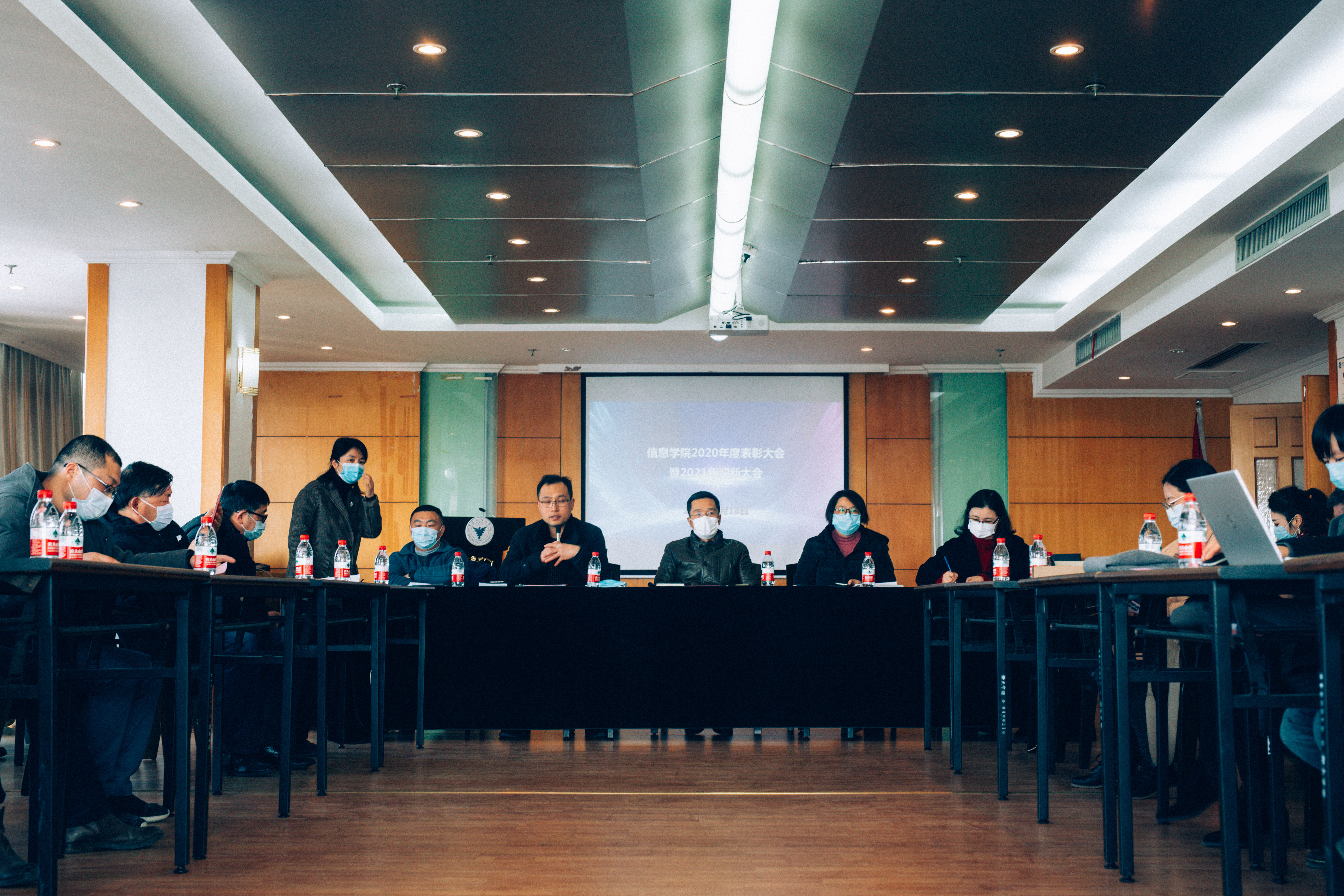 1月18日下午,信息学院在行政楼603召开2020年度教师表彰暨迎新年大会,学院全体教职工参加了此次大会,会议由学院党委书记应中元主持。