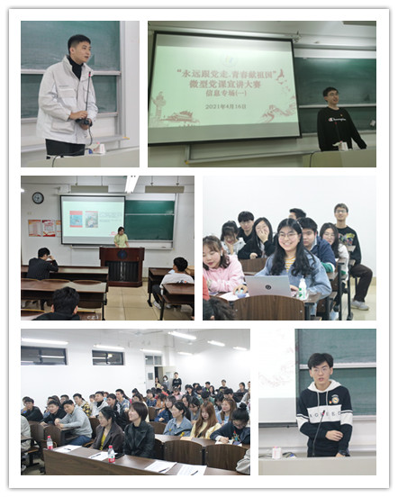 今年是建党100周年,是两个“一百年”奋斗目标的历史交汇点,是中华民族实现伟大复兴“中国梦”的征程中具有里程碑意义的年份。在此背景之下,信息学院与外国语学院联合举办了微党课宣讲大赛。在为期大半月的周赛中,双方学院学生党员积极参与,信息学院辅导员杜明珠、董俊娜、金智展,外国语学院辅导员卢美丽、刘杜鹃和张弦作为评委老师分别参与3场比赛。