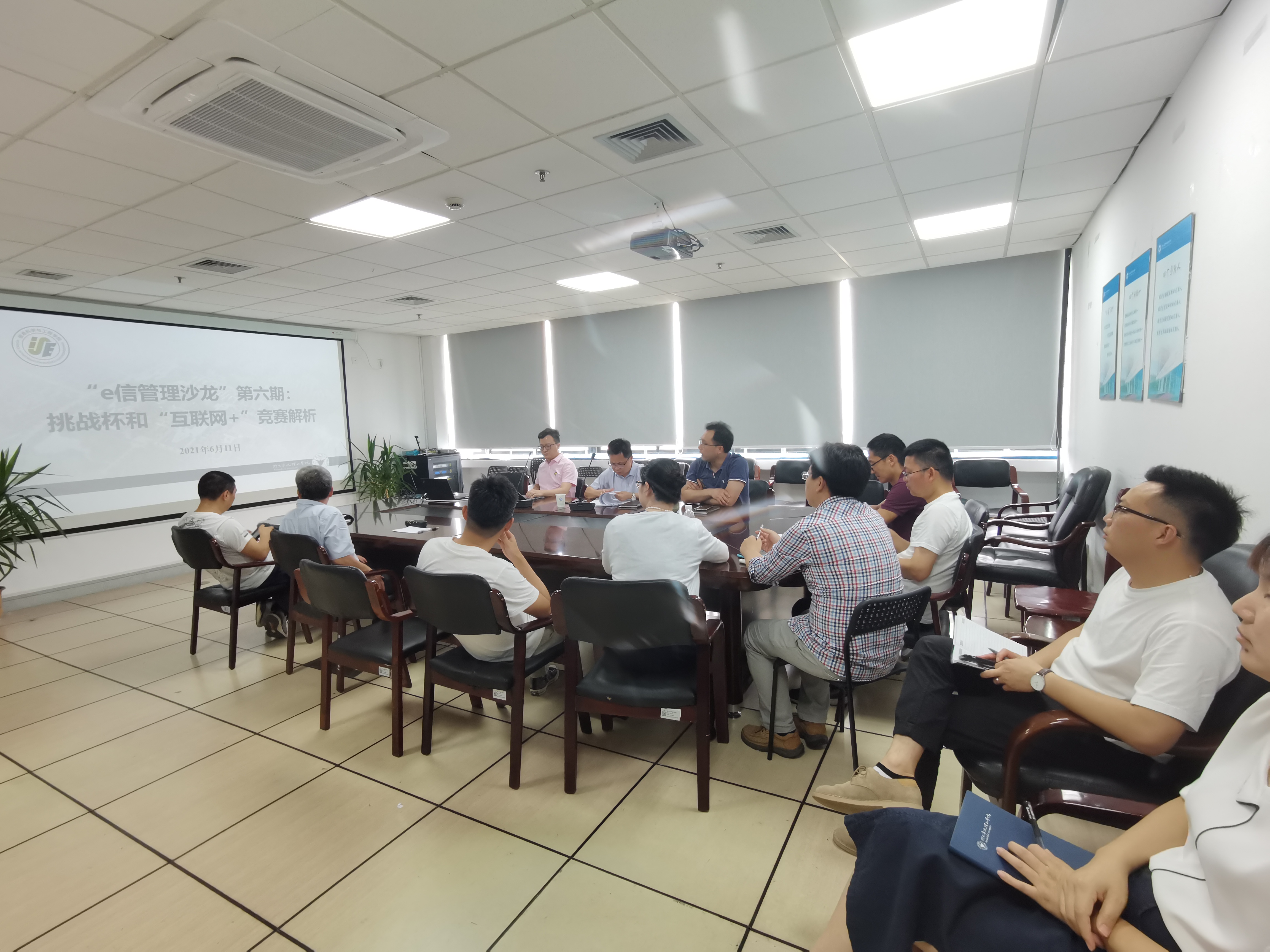 为进一步强化学院科创育人体系建设,谋划学院学科竞赛平台发展。2021年6月11日,信息学院“e信管理沙龙”第六期—挑战杯和“互联网+”竞赛解析的交流研讨活动在石鳞大楼902会议室举行。本次沙龙由学院党委书记应中元主持,特邀启新学院副院长廖海鹏和学校团委副书记夏文来主讲,信息学院相关领导班子成员及二级机构相关负责人、学科竞赛骨干指导教师等参与了本次活动。