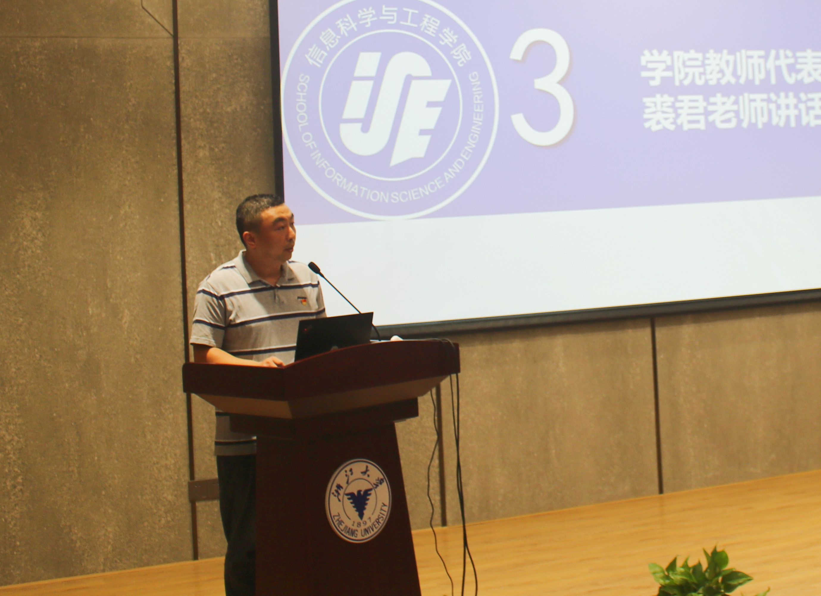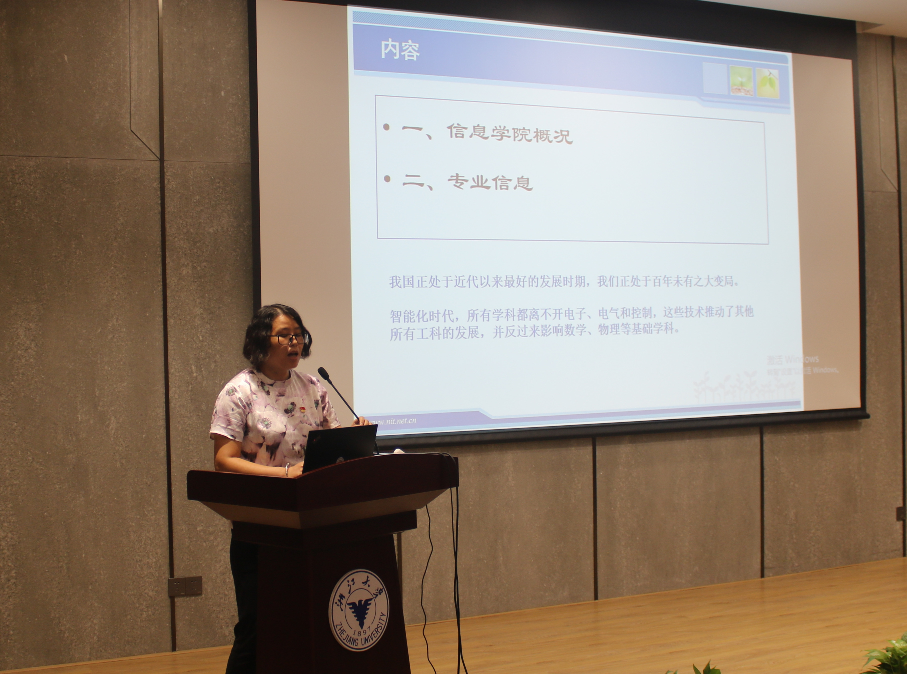 学院副院长陶吉利向新生们详细介绍了信息学院的概况,各专业培养目标、毕业要求、专业特色、课程体系以及学生培养成果,让新生们对学院概况和专业情况有了初步的认识。教师代表学院副院长裘君勉励大家,成长是一种个人的修行,要学会独立与成长,要勤奋学习更要心怀梦想和使命,鼓励新生们学习、实践、创新,为学院学科竞赛再添佳绩。老生代表学院学生会主席施燕为新生们分享了自己学习和生活的成长心得,鼓励新生们在信息开启追梦和圆梦之旅;新生代表自动化求是班周立君同学围绕《万物理论》、《模仿游戏》、《香浓传》三部电影,分享自己对大学对人生的思考,幽默独到的发言风格获得台下师生的热烈掌声。党委副书记方芳在总结中勉励全体新生珍惜当下、抓住现在,扬起理想风帆,积蓄前进能量,锻造过硬本领,用有趣的态度过向往的生活。