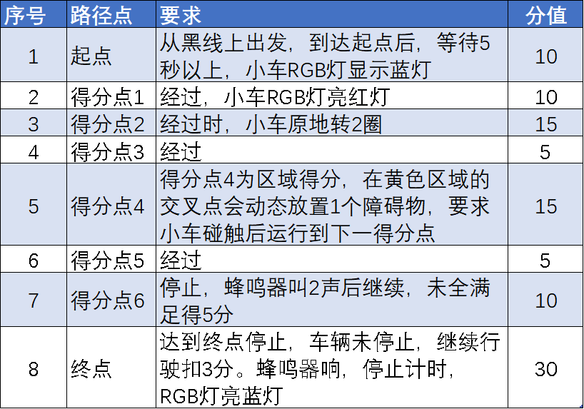 相对于第一届采用的迷宫赛道,本次校内赛结合建校二十周年主题,重新制定了比赛规则,小车在网格赛道上运行,要求小车能够运行到对应的交叉点并实现相应的动作,引入了原地旋转、碰撞检测、区域定位等特殊运动要求,要求各参赛队各自规划小车行走路径,以小组得分最高、速度最快为评分原则,各参赛队发挥主动性,各出奇招,采用不同的思路和路线,最后“拆迁大队”以0.95秒的优势获得第一名。
