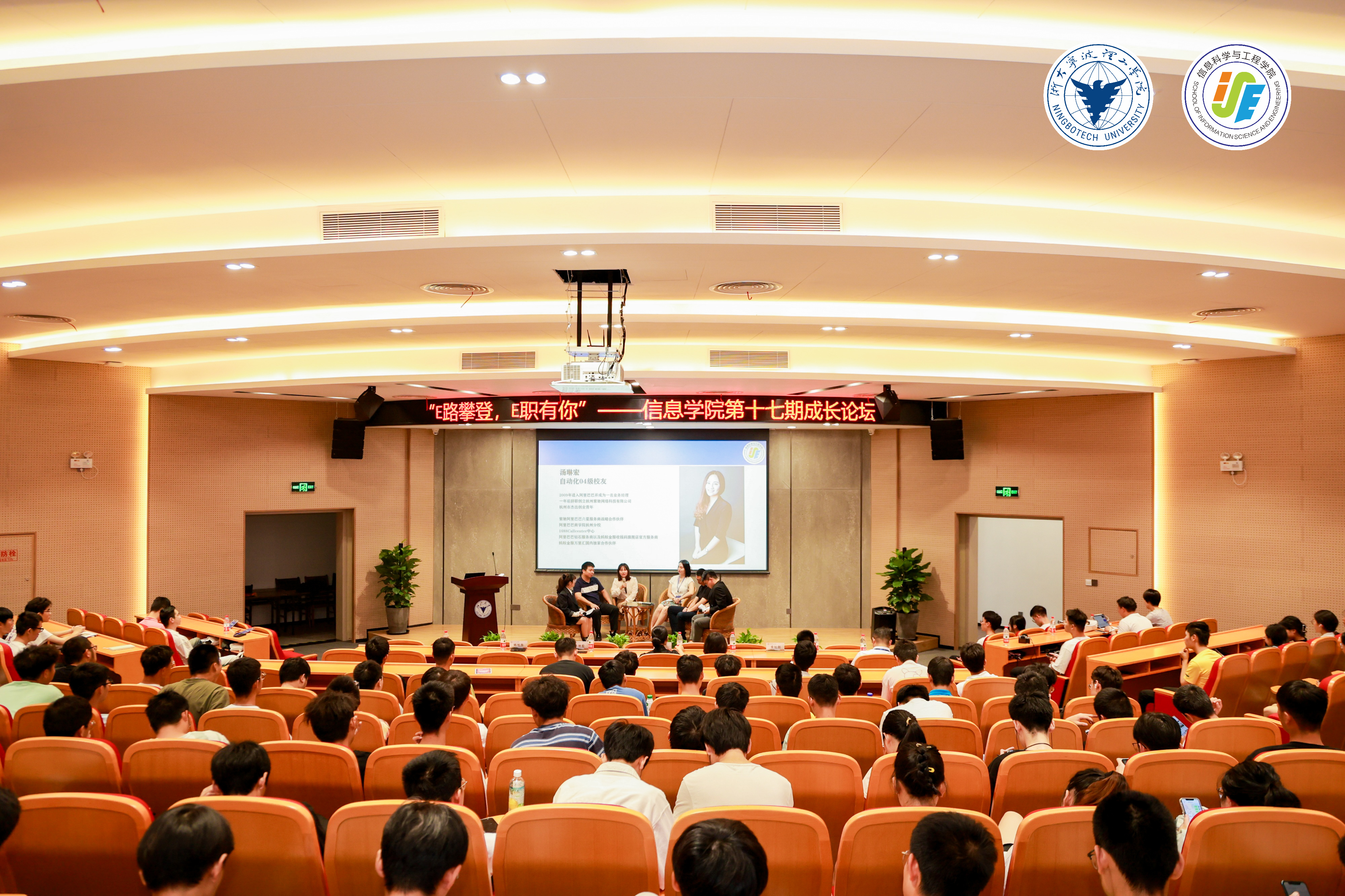 9月25日上午启新大讲堂里济济一堂,信息学院品牌活动“成长论坛”如期开讲。历经了十七个春秋,“成长论坛”陪伴了一届又一届的信息学子,恰逢我校建校二十周年,本次“成长论坛”活动邀请到信息学院四位优秀校友,通信专业2002级校友双良商达环保有限公司总经理潘碧文,自动化专业2004级校友杭州紫驰网络科技有限公司创始人汤琳宏,自动化专业2002级校友宁波市地铁轨道交通集团有限公司机自维修中心副经理金如刚,通信专业2008级校友浙江工业大学硕导杨旭升,为大一学生展现了不同的职业发展路径的种种精彩。信息学院党委副书记方芳,学工办主管杜明珠和校友代表、在校生代表出席了此次论坛。