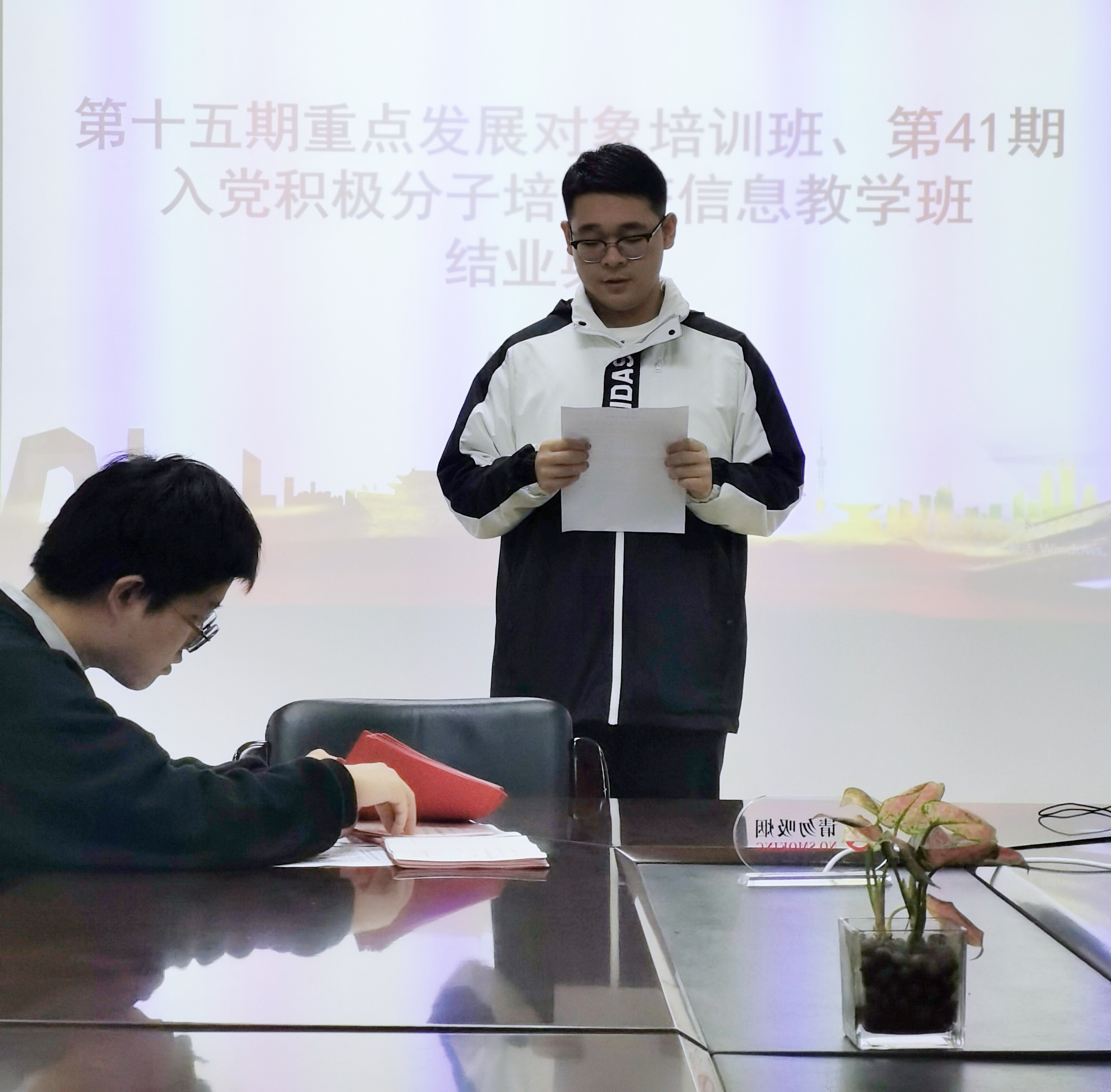 会上,教学班班主任学院思政主管杜明珠带领大家回顾了培训班的学习历程,历经半个多月,党校培训班的学员们经过了理论辅导报告、纪录片观摩、党课自修研讨等环节,以及垃圾分类实践活动等多元化方式进行系统培训学习。最终,重点发展对象培训班19名学员经过综合考核顺利结业;30名入党积极分子中29位顺利结业。
