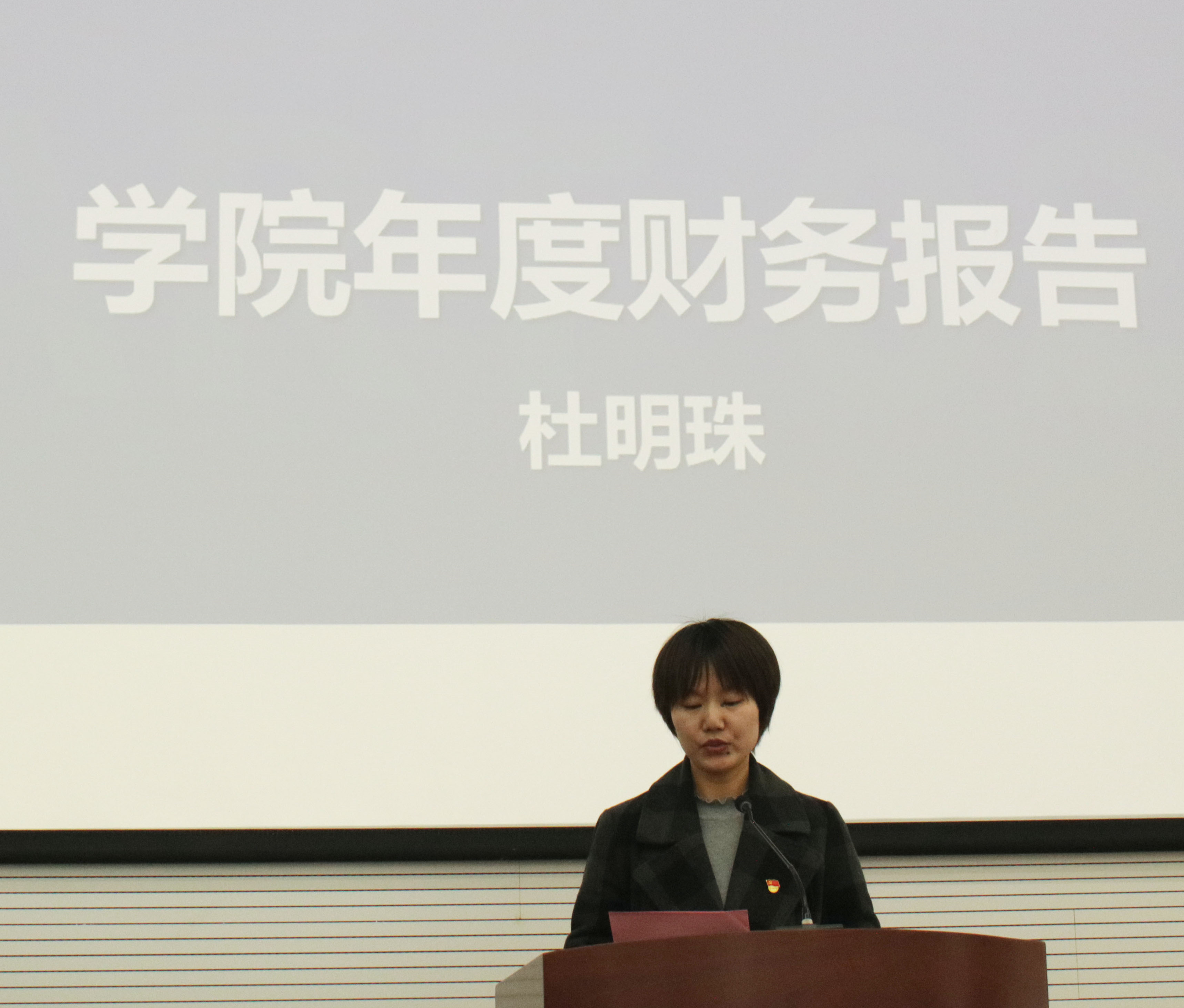 随后,学院办公室业务主管杜明珠受学院委托向大会作学院财务工作报告。