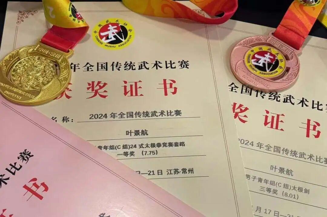 叶景航用他的汗水和努力,赢得了这份荣誉。这份荣誉的背后,是他无数个日夜的辛勤付出和不懈努力。他深知成功需要付出努力和汗水,需要克服恐惧和困难。备赛期间,叶景航一周三次进行高强度训练,不断夯实自己的太极拳基础。站桩、太极步等基本功,他每天都反复练习,不断调整呼吸和速度,尽最大努力将动作放慢、步子压低。这种对基础的执着追求,让他在比赛中展现出了非凡的实力。