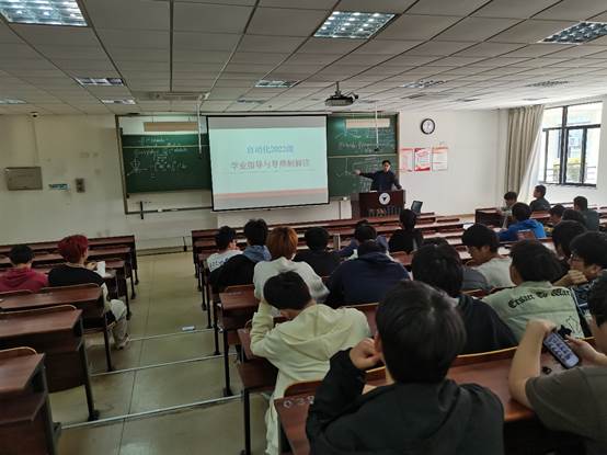 为进一步落实工程教育认证对培养目标、毕业要求公开和宣传的要求,以及本科生导师制度,4月27日下午,自动化专业在NC102召开2022级自动化专业本科生学业指导会议。信息学院副院长沈非凡,自动化系副主任陈卓易,自动化系主任助理李永杰、刘骞宇等专业教师,以及自动化专业全体2022级学生参加。
