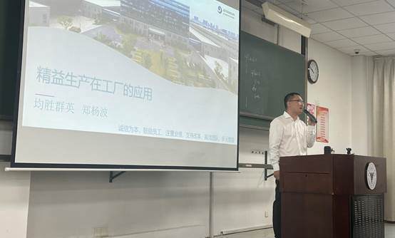 课程开始,郑杨波经理首先向学生介绍了均胜集团以及均胜群英汽车系统股份有限公司的基本情况,使学生对公司的背景和发展有了更清晰的认识。随后,课程主题紧扣“精益生产在工厂的应用”,郑经理着重强调了精益生产的重要性,并为学生提供了一场深度解读。他详细讲解了精益生产的概念,揭示了这一生产方法的内涵和原则。郑经理还深入介绍了精益生产的工具和方法,以及如何将这些工具应用到实际工厂生产中,降低企业生产成本,提高企业产品生产率,完善企业管理效率。