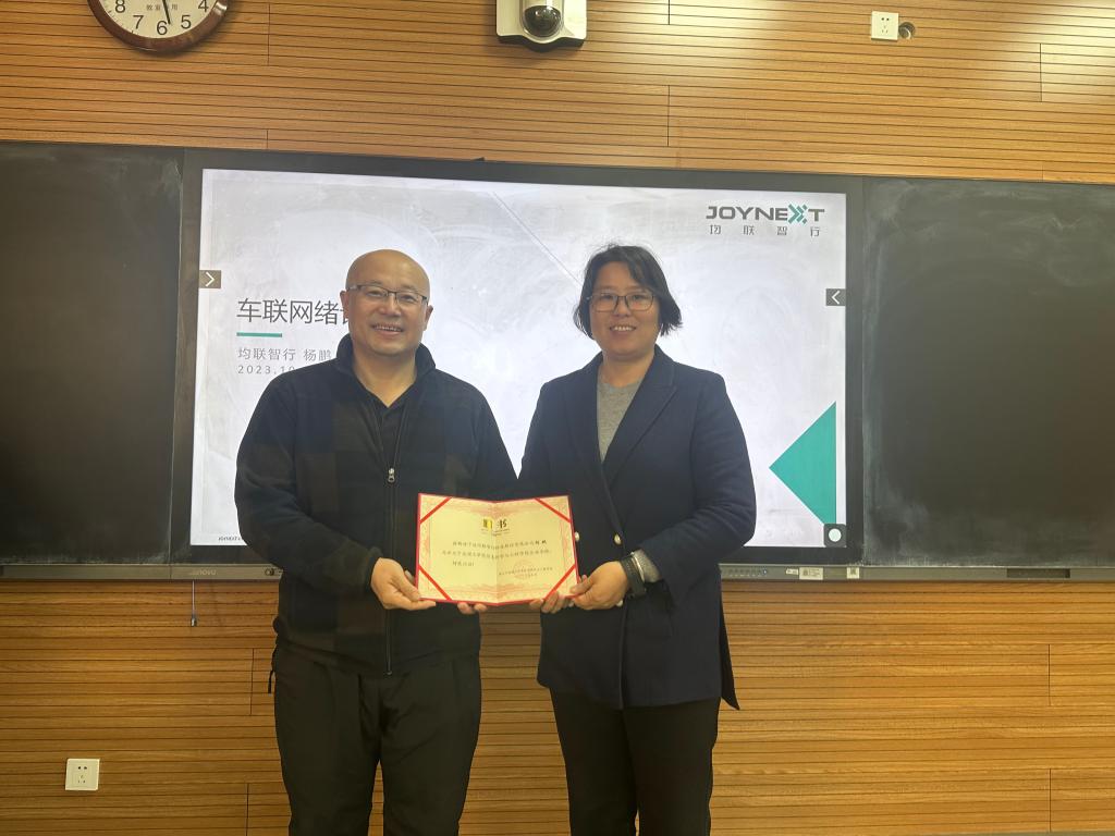 为深化教育教学改革,贯彻落实“校企协同育人”的模式,信息学院结合产业发展现状及专业课程开设情况,开展企业导师进课堂活动。2023年11月13日,信息学院有幸邀请了均联智行的中国区产品总监杨鹏先生在《工业物联网》课程上,为自动化专业的学生们讲授了“车联网绪论”,学院副院长陶吉利为杨鹏颁发了企业导师聘书。
