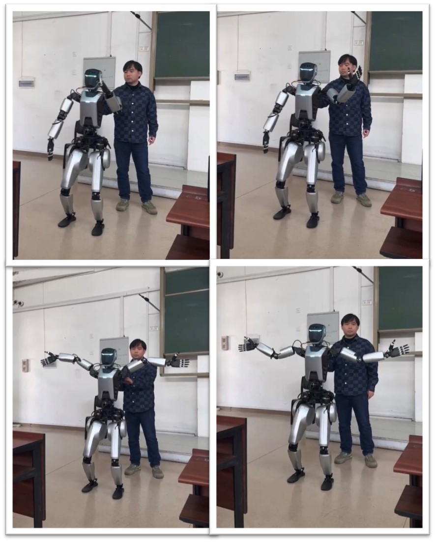 作为人工智能领域的专家,郭继舜为在场的师生们分享了他在人形机器人研发领域的心得体会。首先,郭继舜展示了均胜自主研发的人形机器人贾维斯JARVIS(Joyson A Robot Vibrant Intelligent System均胜机器人动态智能系统),贾维斯独立在讲台行走、进行自我介绍、与郭老师进行对话、与学生进行挥手打招呼,并展示了灵巧的双手。然后,郭继舜深入浅出地介绍了具身人工智能与人形机器人的最新进展、技术要点和应用前景,强调了人形机器人的重要性和潜力,指出这些技术将为人类社会带来巨大的改变和发展机遇。最后,他还介绍了均胜集团的产业布局、人才需求,鼓励和欢迎对人工智能感兴趣的同学进入均胜进行实习和就业。