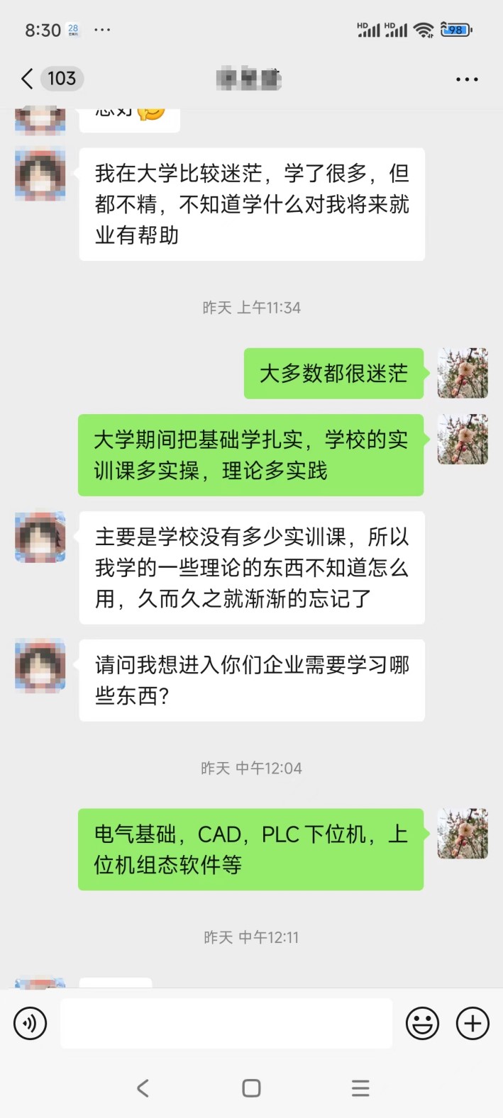 此次分享会不仅为大三学子提供了一次难得的学习机会,也为母校的教学注入了新的活力。会后,同学们积极向褚如元请教学习、就业相关问题,纷纷表示,通过褚如元的分享,自己对自动化课程的学习有了更清晰的认识和更明确的目标,将努力将所学知识转化为实际应用,为未来的职业生涯做好充分准备。