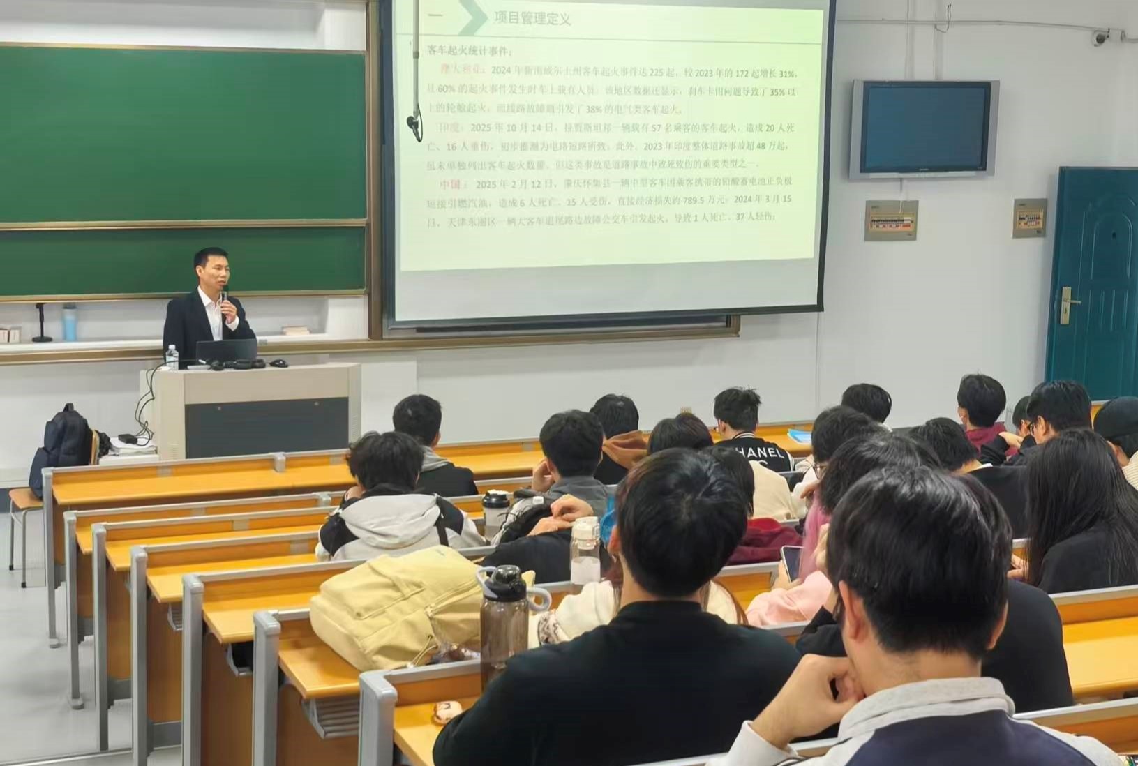 11月12日,浙江中车电车有限公司技术副总工胡远敏走进浙大宁波理工学院信息学院,为电子信息工程专业大四学子带来一场以“工业项目管理”为主题的实战型讲座。讲座聚焦行业真实需求,深度融合技术实践与项目管理,为即将步入职场的学子搭建起从理论通向实践的桥梁。