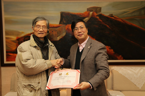 在聘任仪式上,金伟良校长对汪槱生院士正式成为浙江大学宁波理工学院的名誉教授表示热烈欢迎,并为其颁发了名誉教授的聘书、佩戴了校徽。汪槱生院士近一年来一直与信息学院保持密切的学术交流,通过各种形式对一些年青老师进行专业指导,最近又在指导2名信息学院学生的毕业设计,期望从学生指导中了解我们学院学生的专业知识掌握能力及实际运用能力,为后期科研项目的合作与分工打好铺垫。