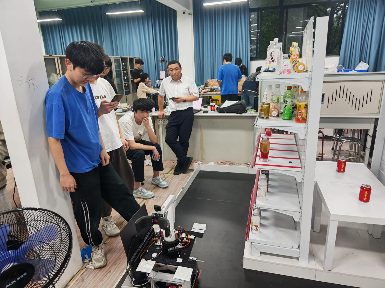 经过3个月的努力与付出,在超市组和对抗组别上,最后有24支队伍进入校内赛。校内赛期间,来自不同专业的学生组成参赛队伍,展开激烈角逐。赛场上,各参赛队的机器人各显神通,有的精准完成复杂任务,有的展现出灵活的运动性能。参赛选手们凭借扎实的专业知识和丰富的实践经验,现场对机器人进行调试和优化,力求发挥出最佳水平。