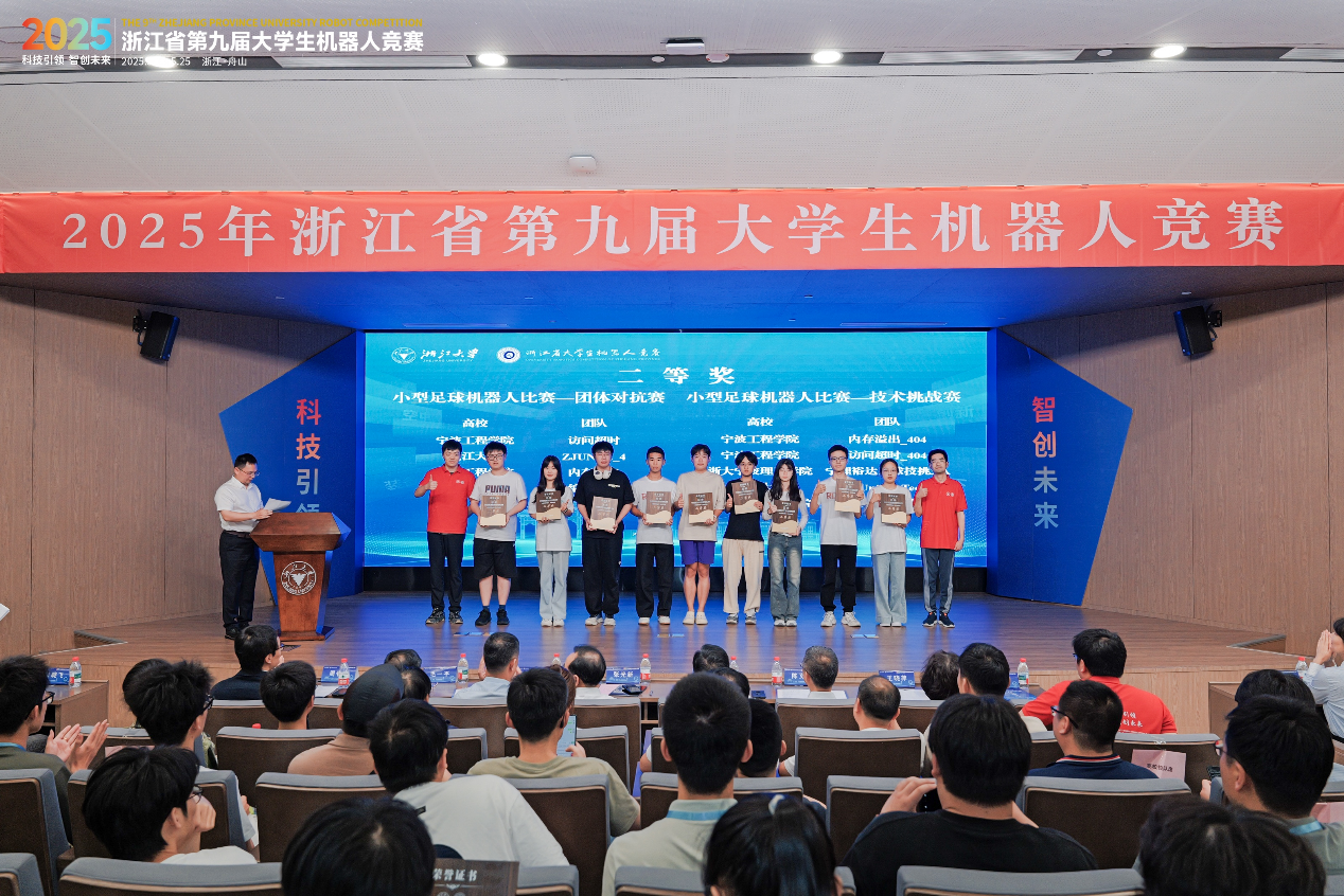5月25日下午,为期三天的浙江省第九届大学生机器人竞赛在浙江大学舟山校区落幕,本届竞赛以“科技引领,智创未来”为主题,设有创新机器人、小型足球机器人、旅游机器人、装配机器人、水下机器人5大主题赛道,吸引来自省内50所高校以及俄罗斯圣彼得堡大学等450余支队伍同台竞技。